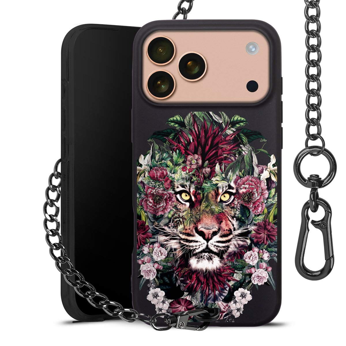 • Mattschwarze Handyhülle mit Metallkette