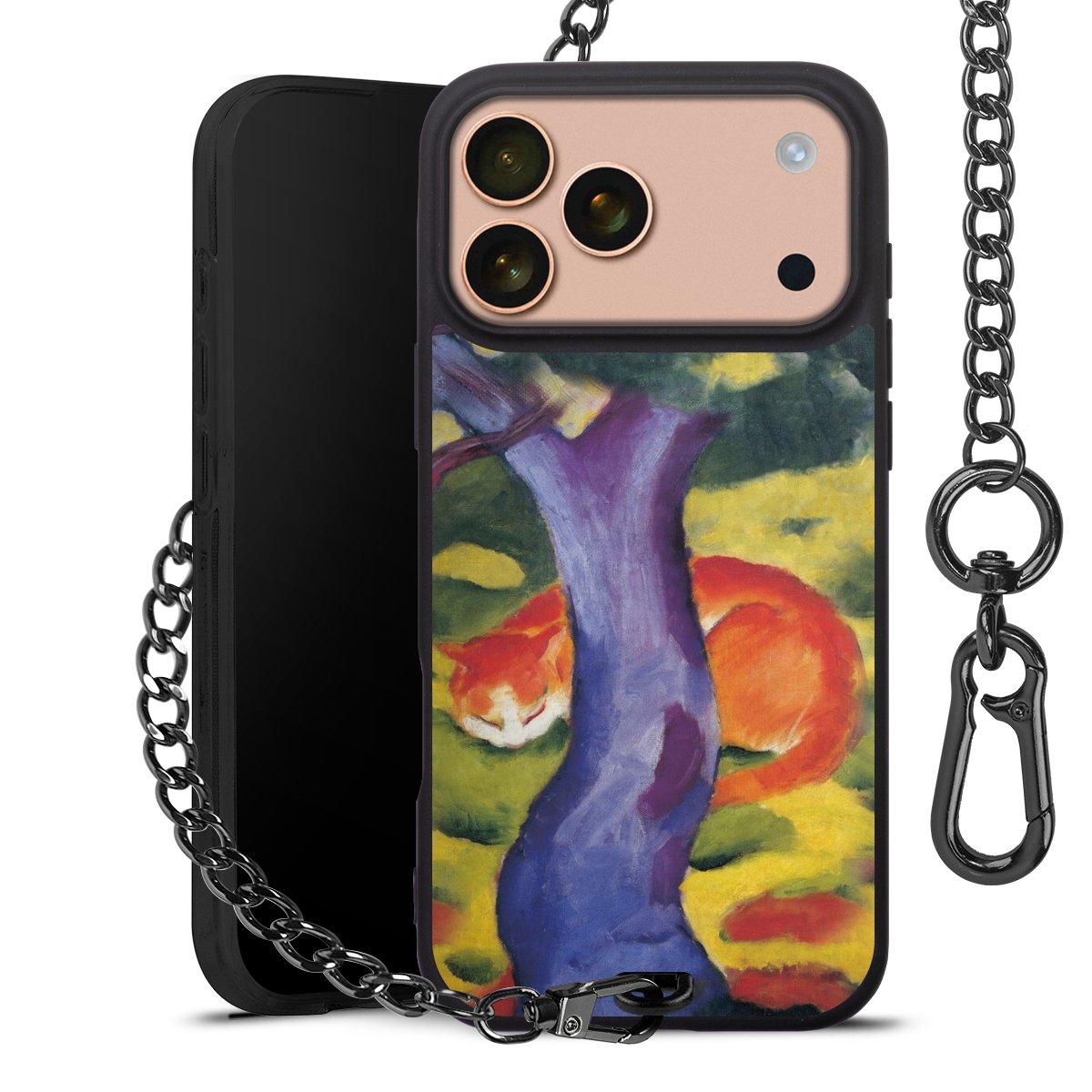 • Mattschwarze Handyhülle mit Metallkette