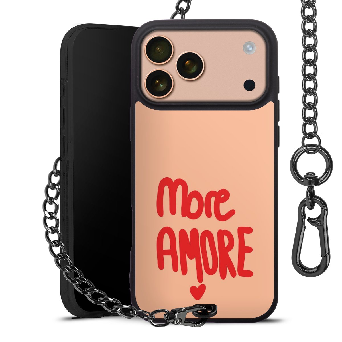 • Mattschwarze Handyhülle mit Metallkette