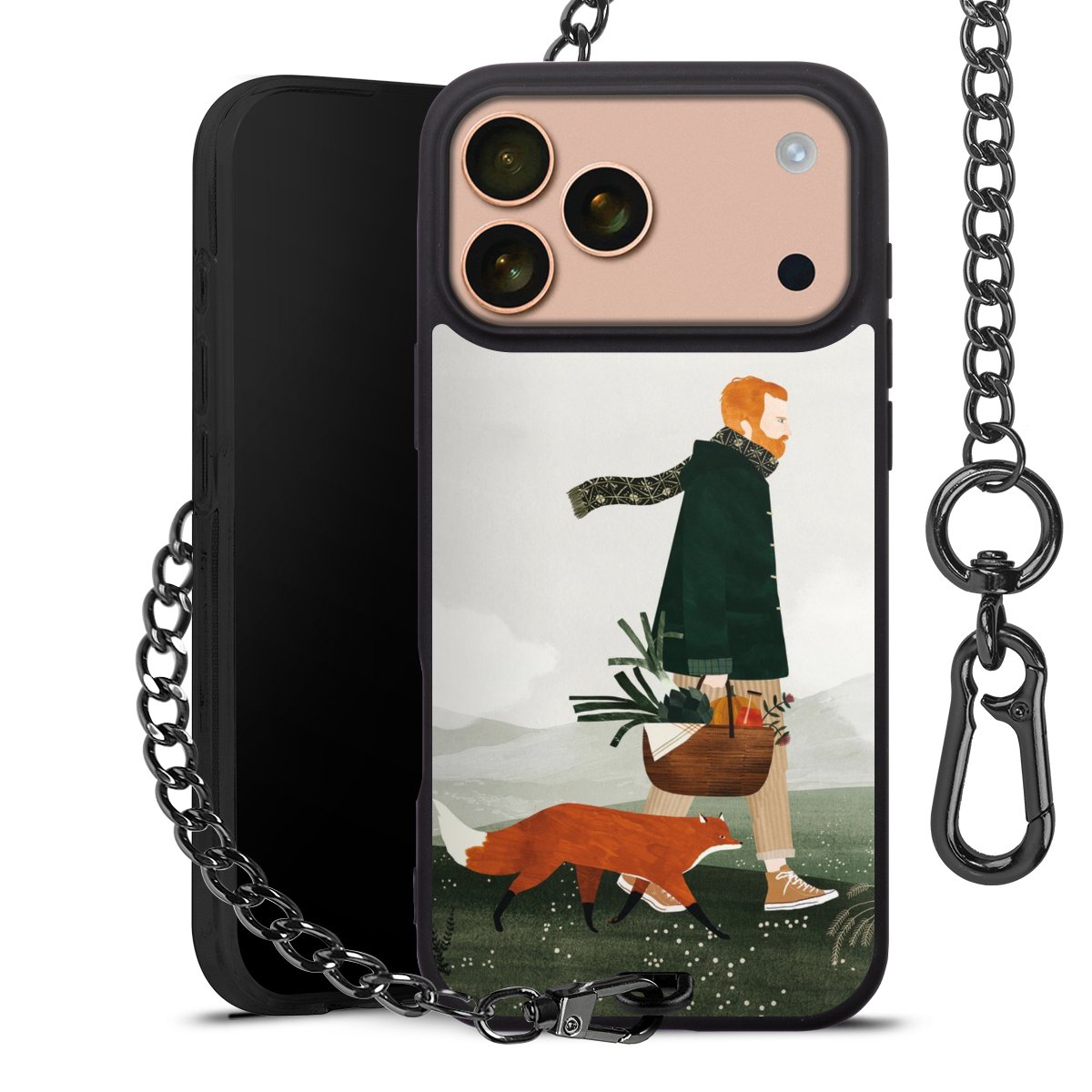 - Mattschwarze Handyhülle mit Metallkette