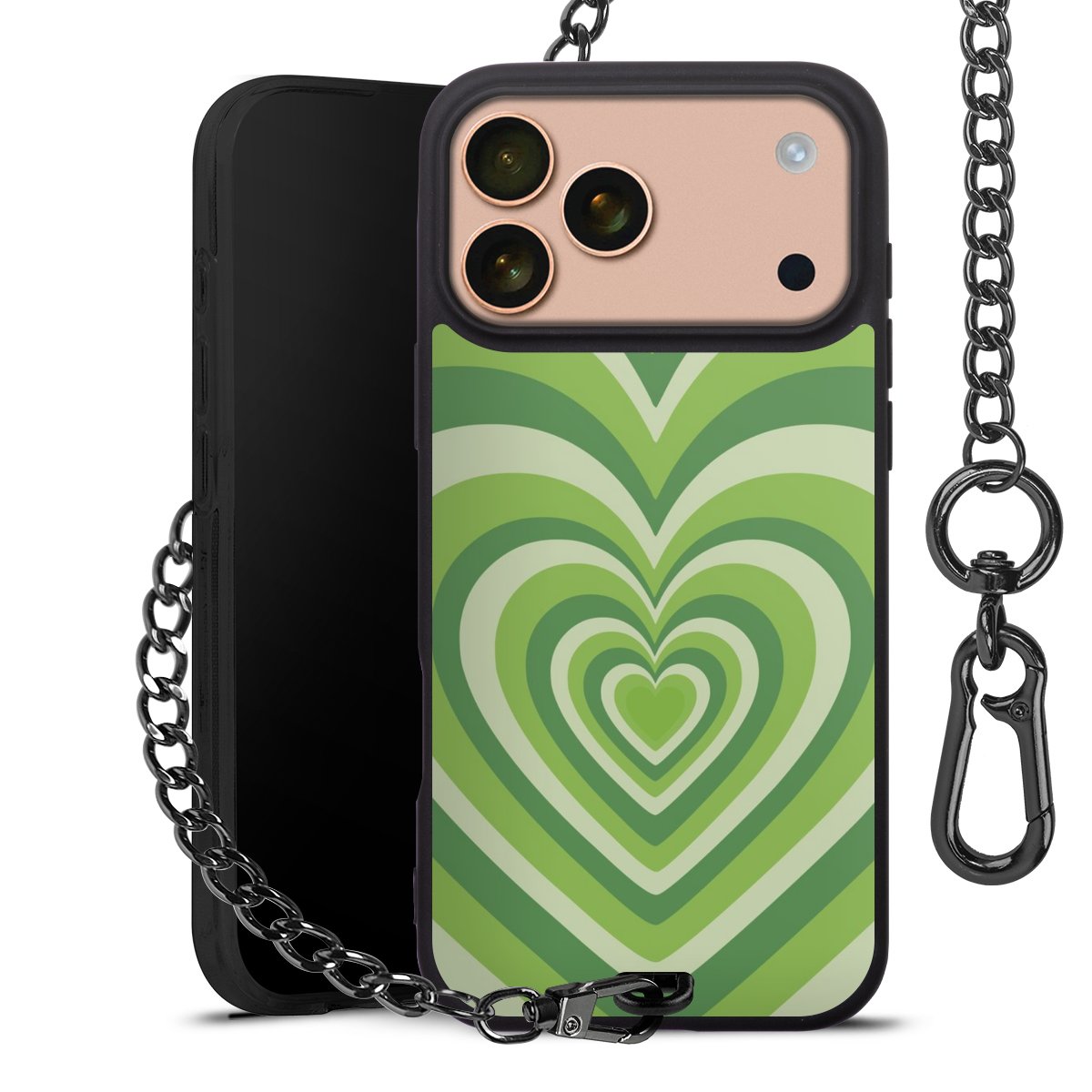 - Mattschwarze Handyhülle mit Metallkette