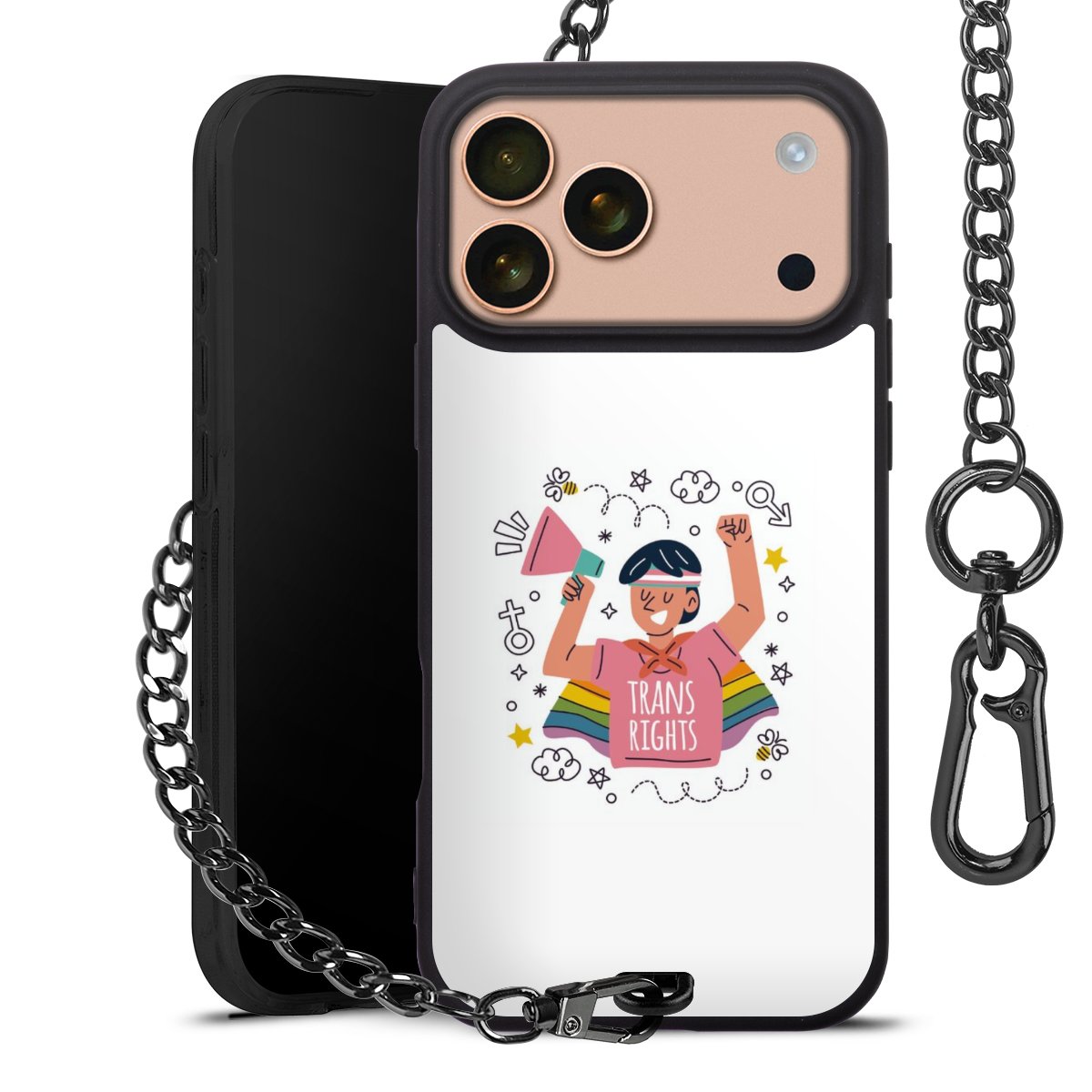 • Mattschwarze Handyhülle mit Metallkette
