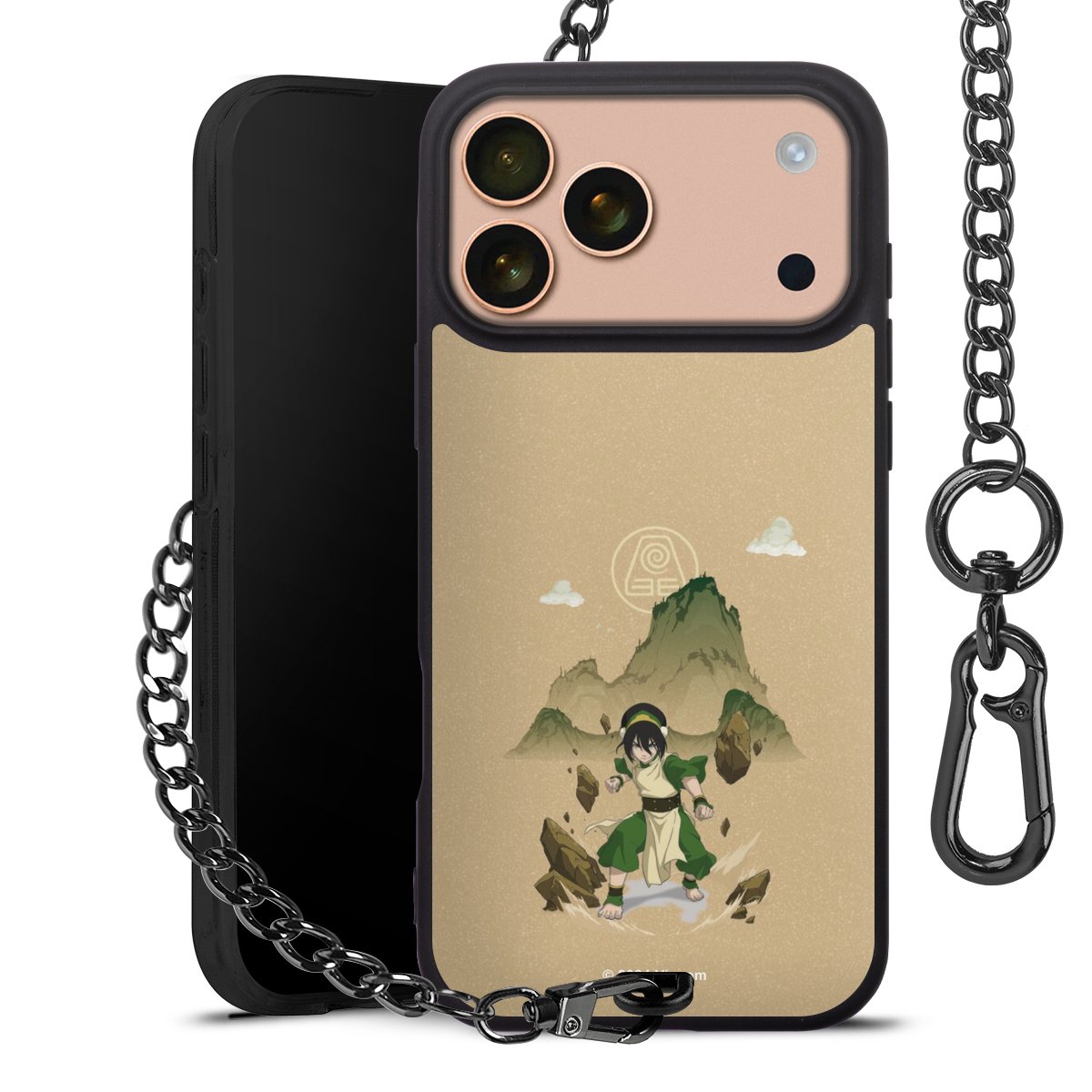 - Mattschwarze Handyhülle mit Metallkette