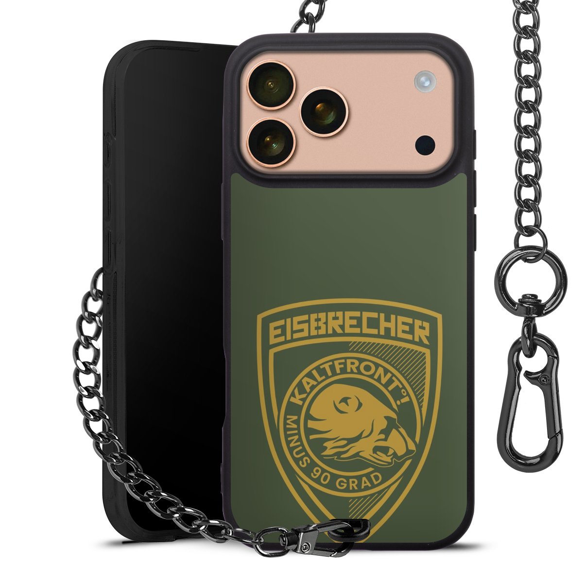 • Mattschwarze Handyhülle mit Metallkette