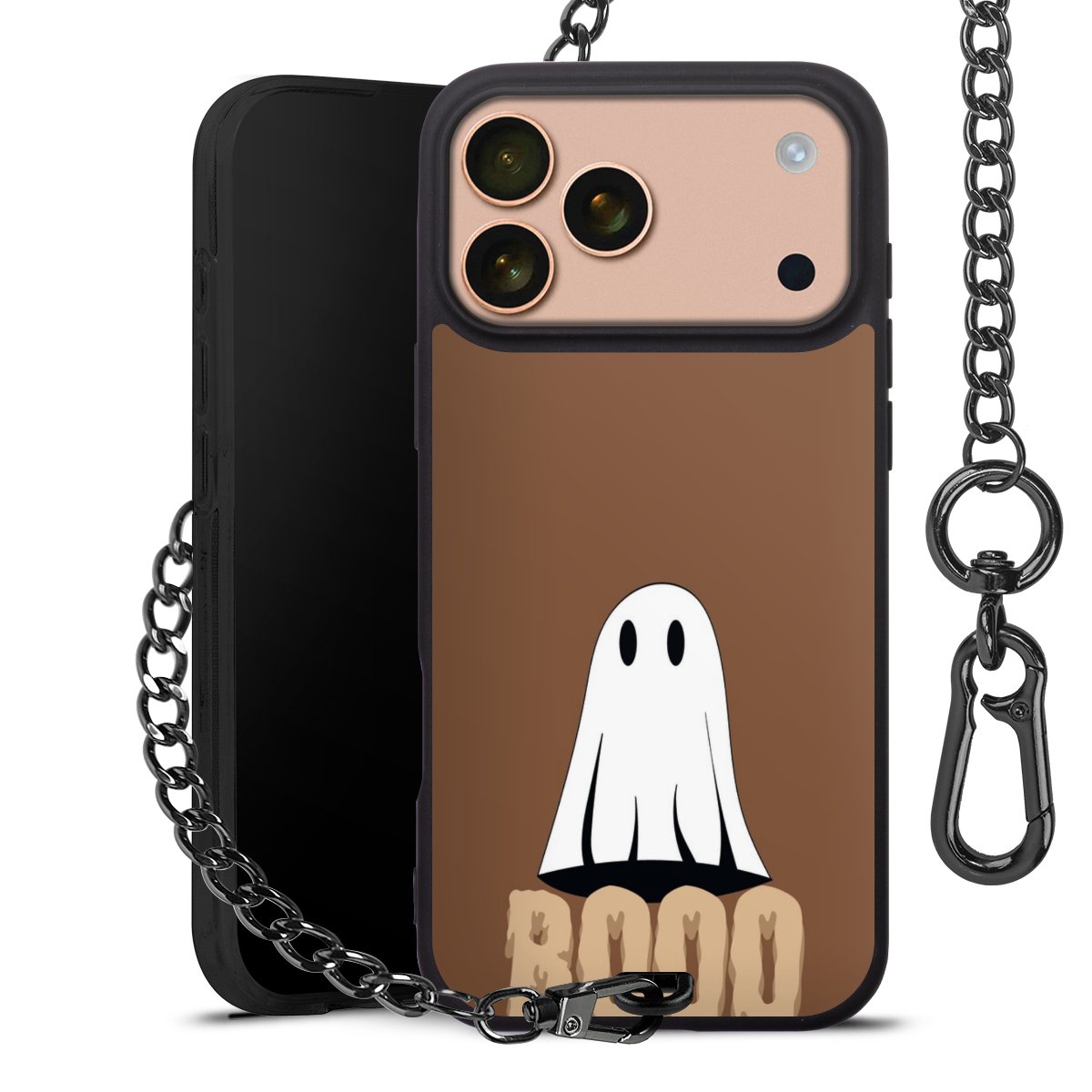 - Mattschwarze Handyhülle mit Metallkette