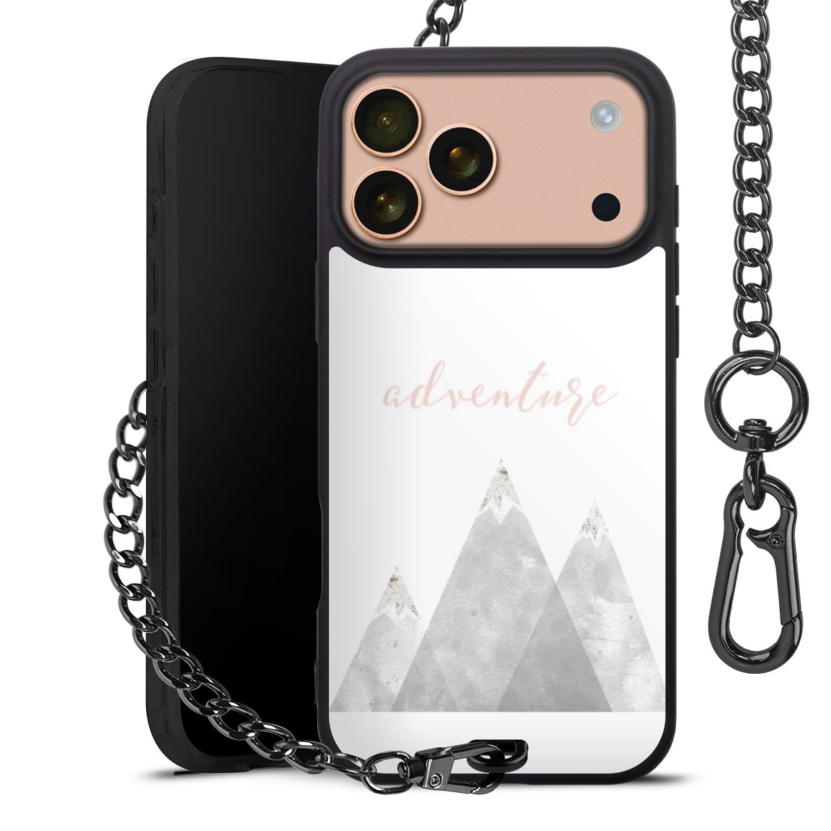 • Mattschwarze Handyhülle mit Metallkette