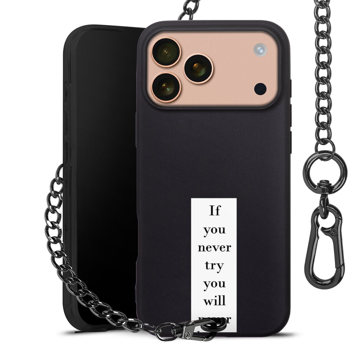 - Mattschwarze Handyhülle mit Metallkette