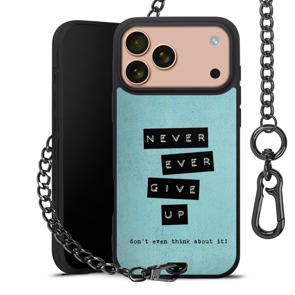 • Mattschwarze Handyhülle mit Metallkette
