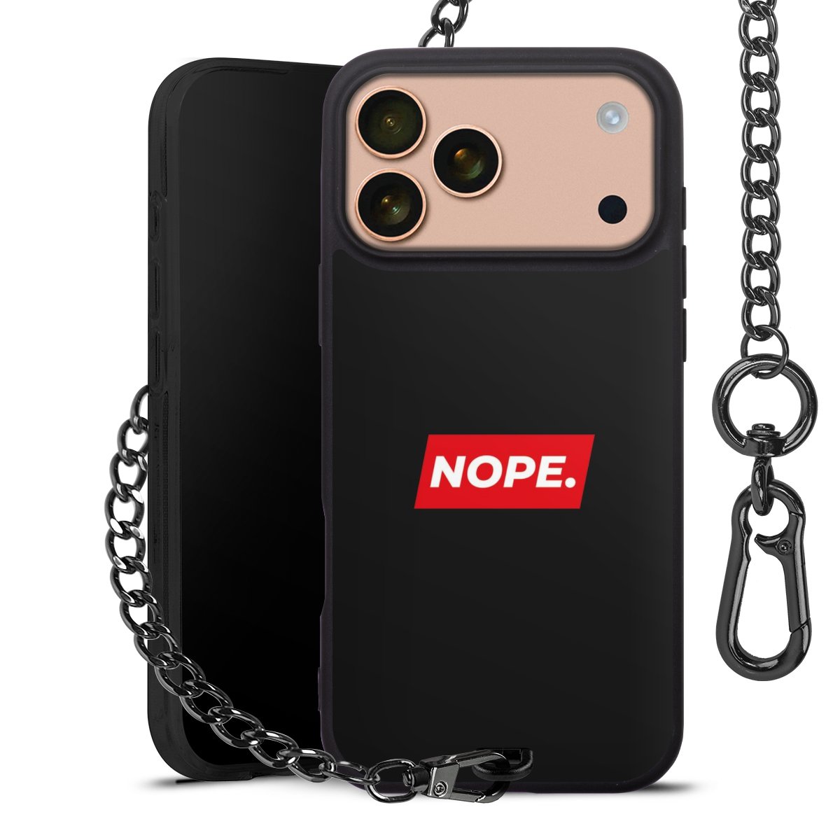 • Mattschwarze Handyhülle mit Metallkette