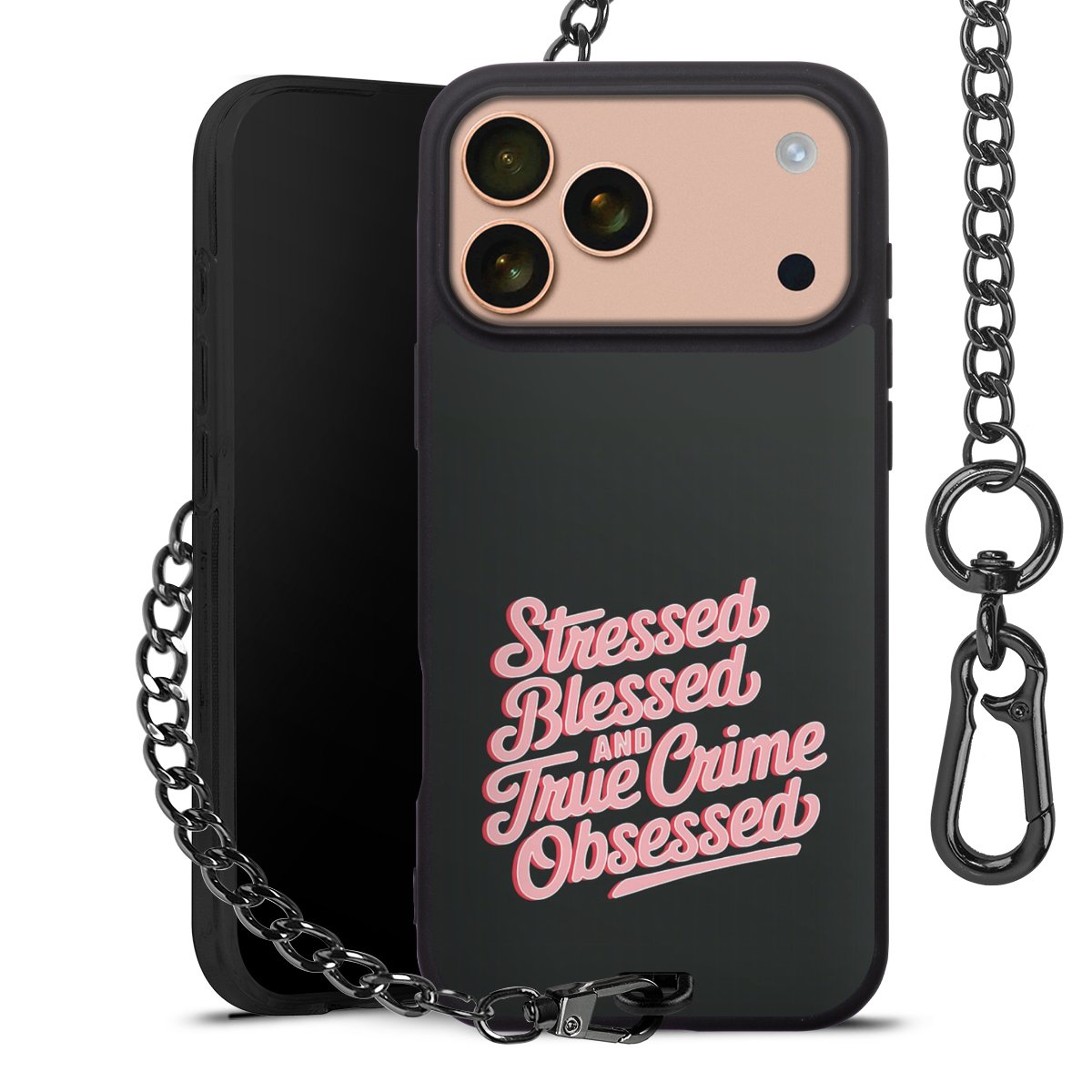 • Mattschwarze Handyhülle mit Metallkette
