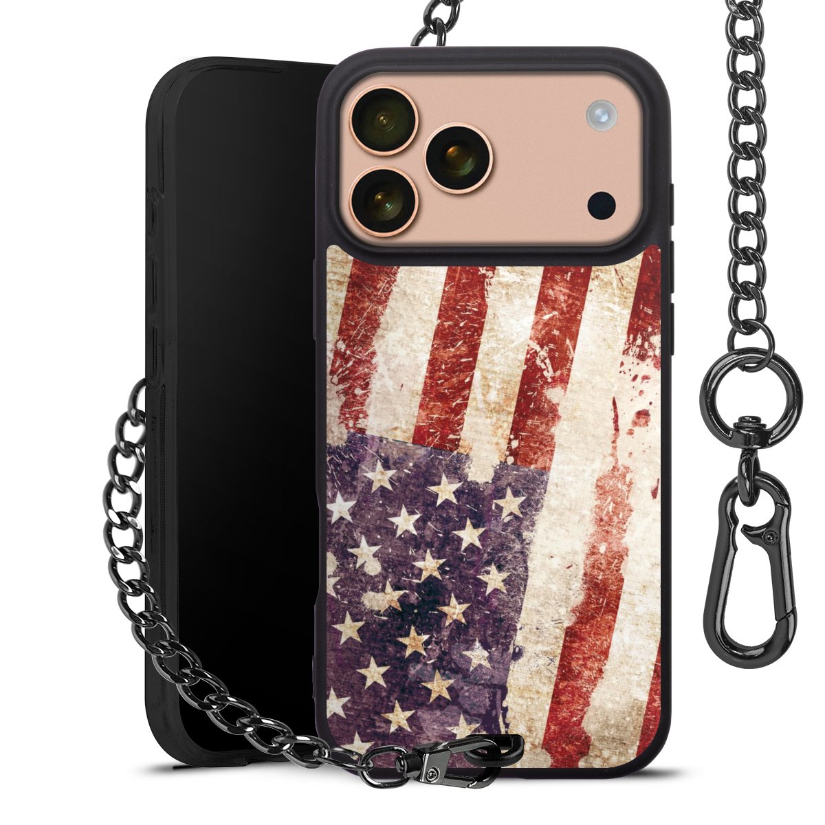 • Mattschwarze Handyhülle mit Metallkette
