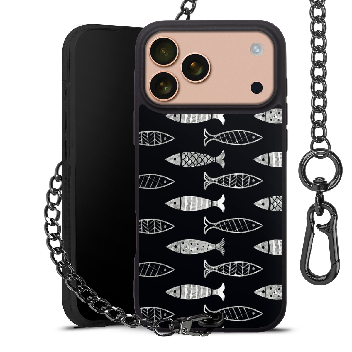 • Mattschwarze Handyhülle mit Metallkette