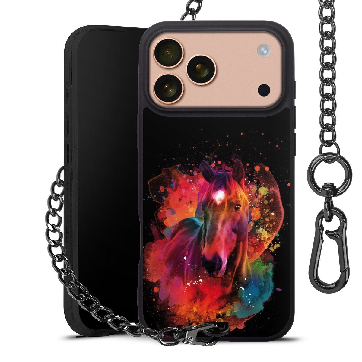 • Mattschwarze Handyhülle mit Metallkette