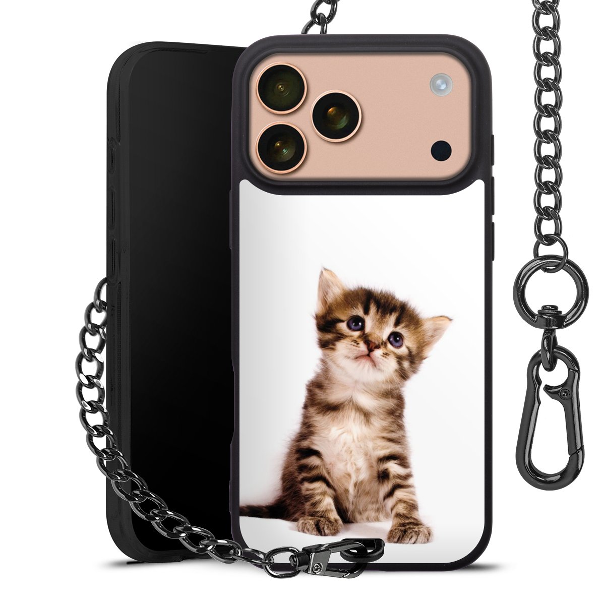 - Mattschwarze Handyhülle mit Metallkette