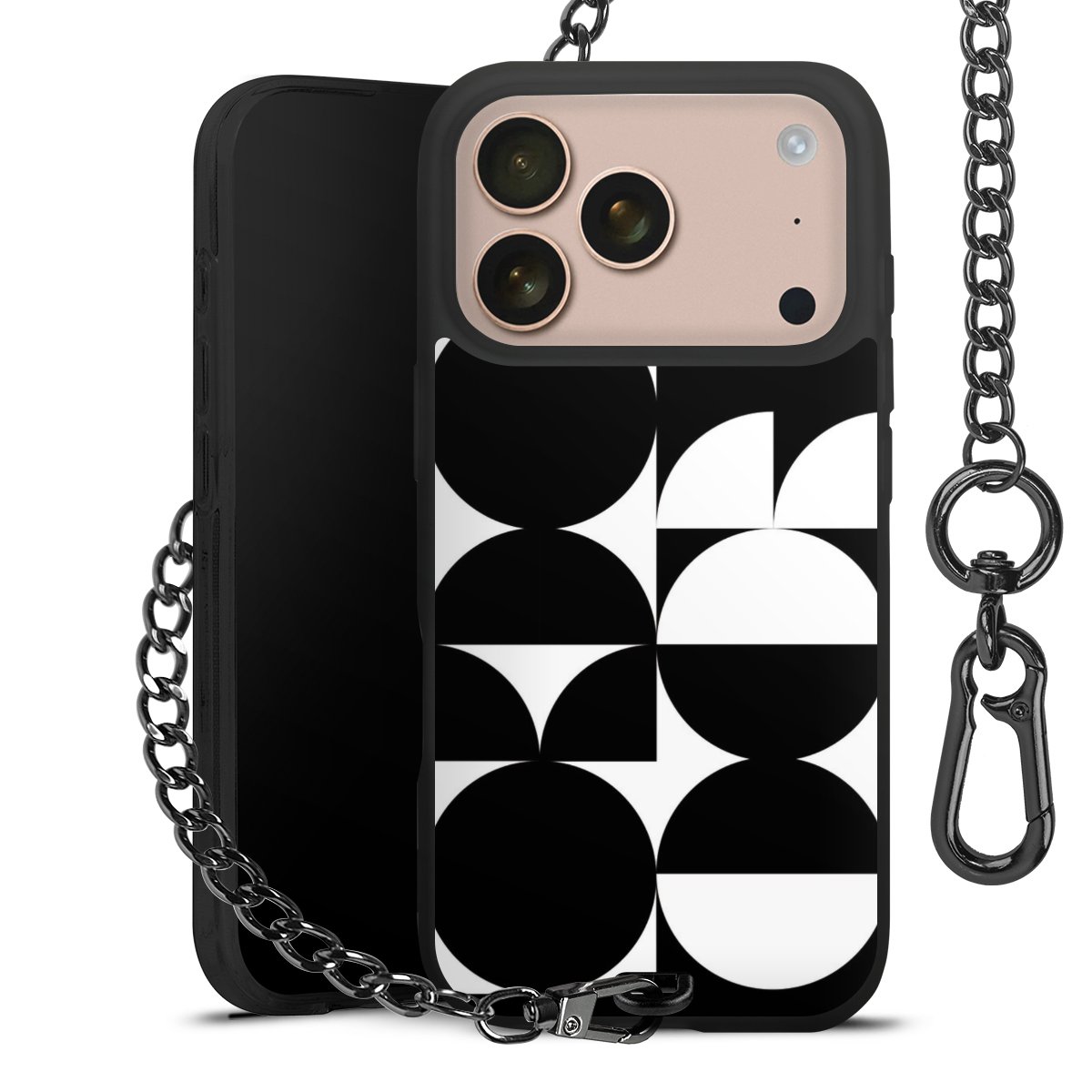 - Mattschwarze Handyhülle mit Metallkette