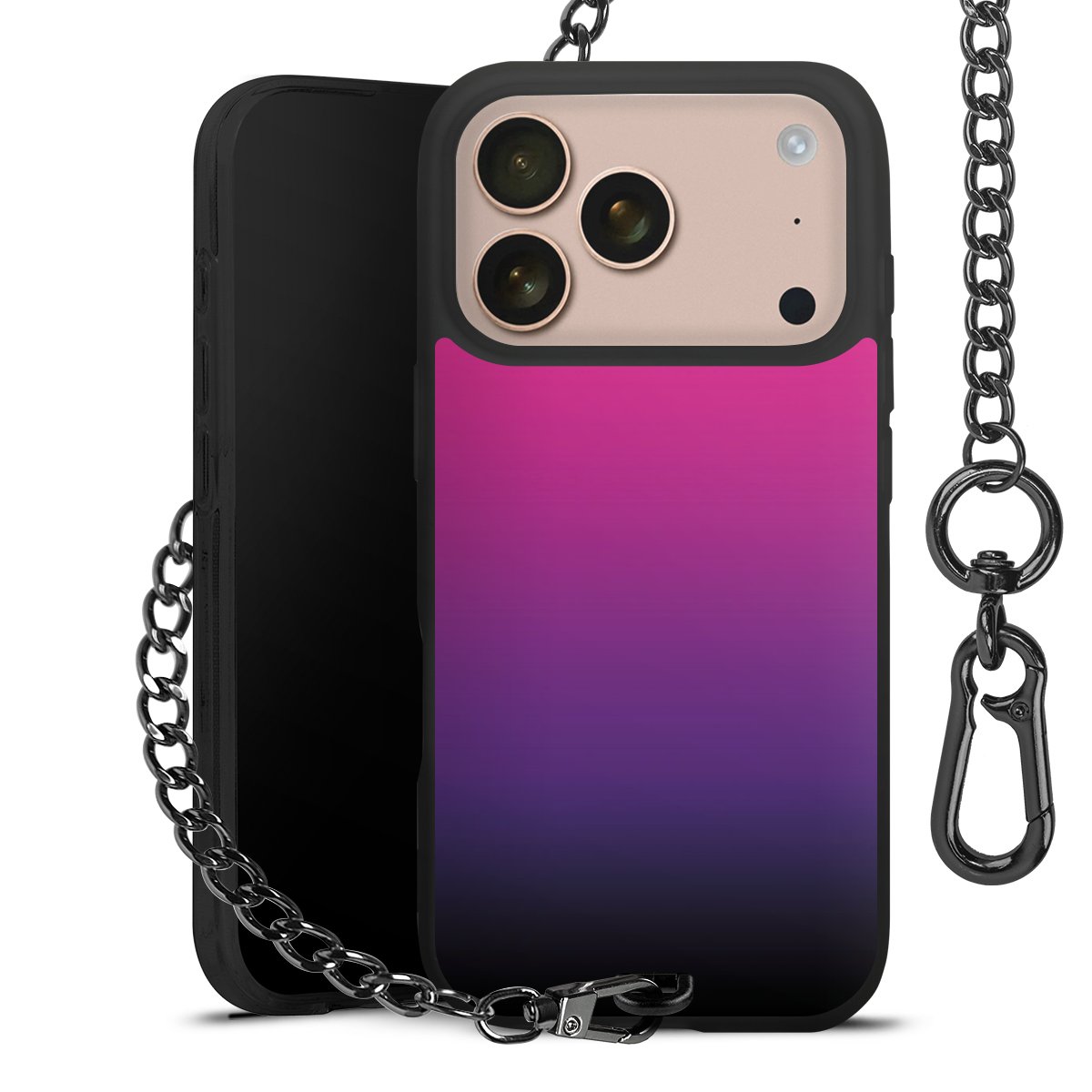 - Mattschwarze Handyhülle mit Metallkette
