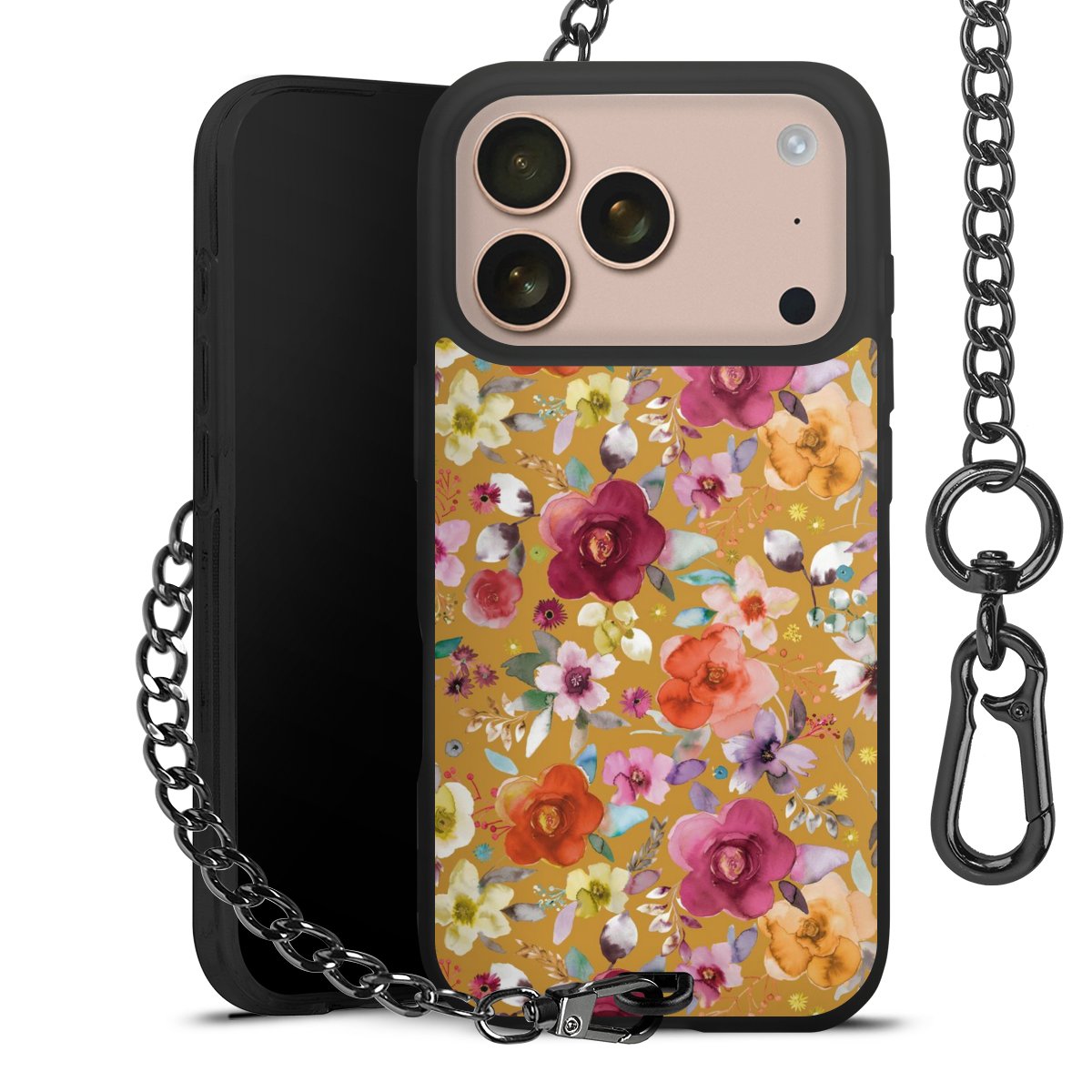 • Mattschwarze Handyhülle mit Metallkette