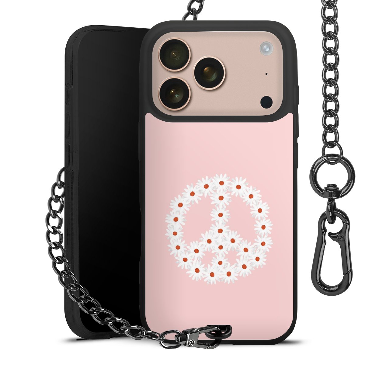 • Mattschwarze Handyhülle mit Metallkette