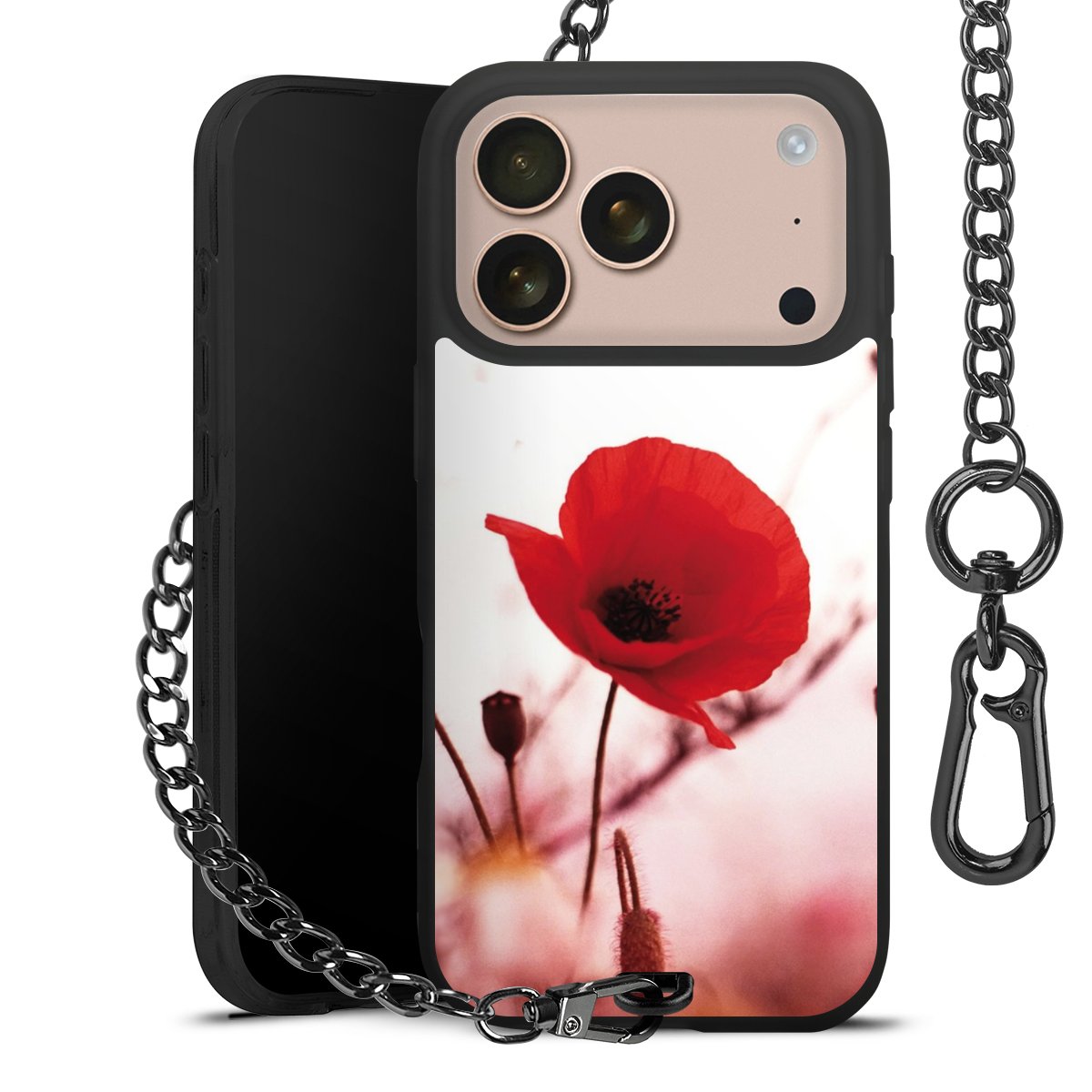 - Mattschwarze Handyhülle mit Metallkette