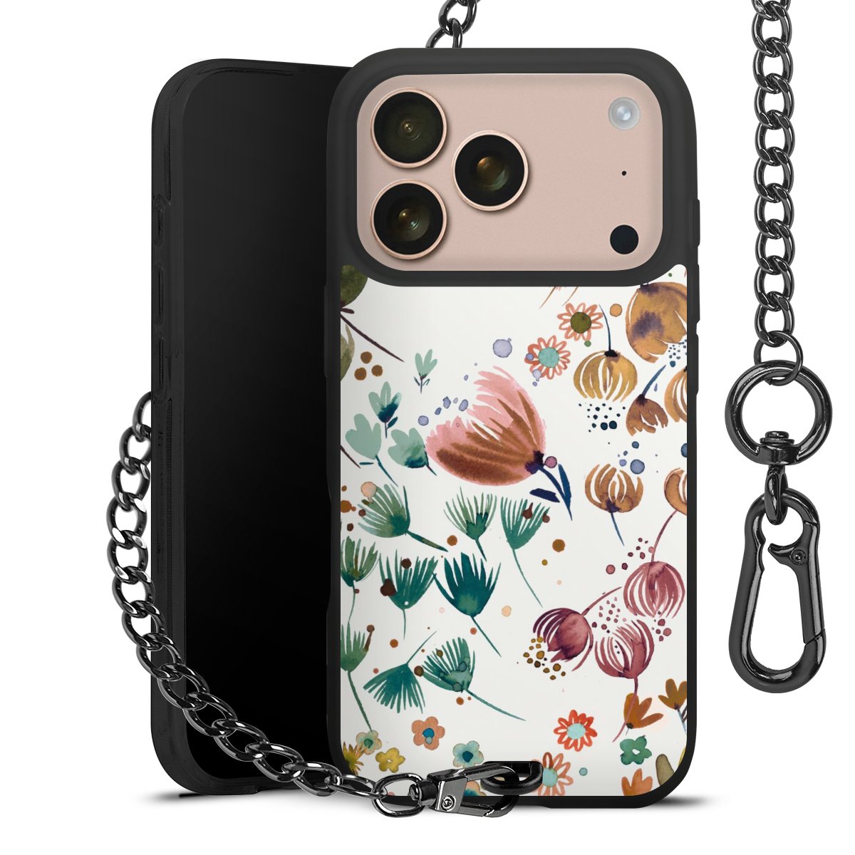 • Mattschwarze Handyhülle mit Metallkette