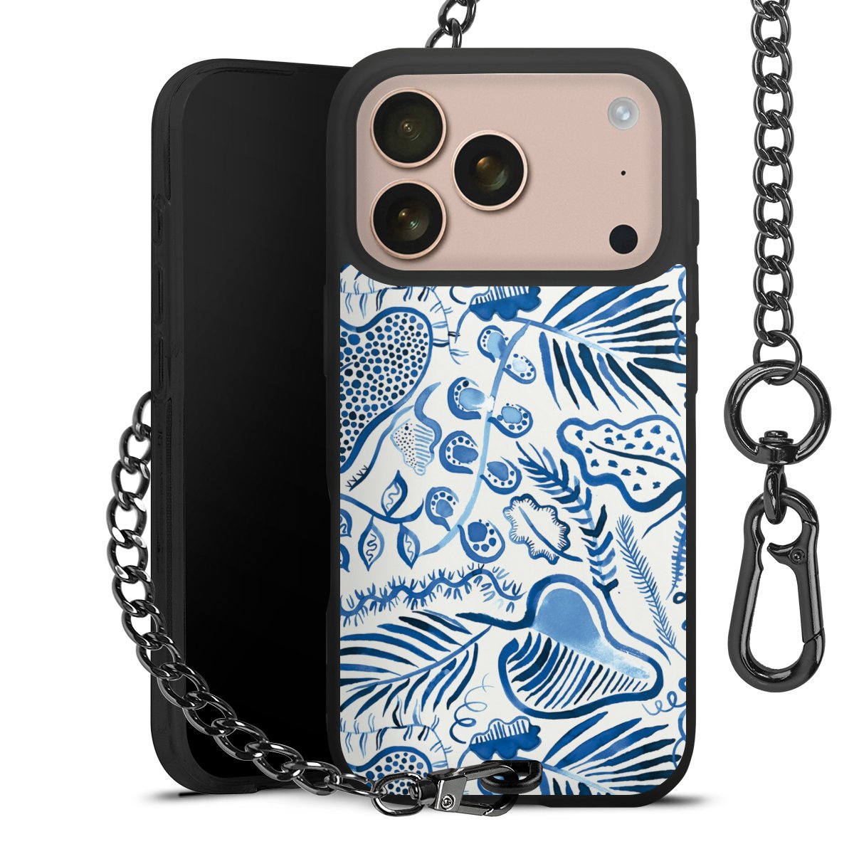 • Mattschwarze Handyhülle mit Metallkette