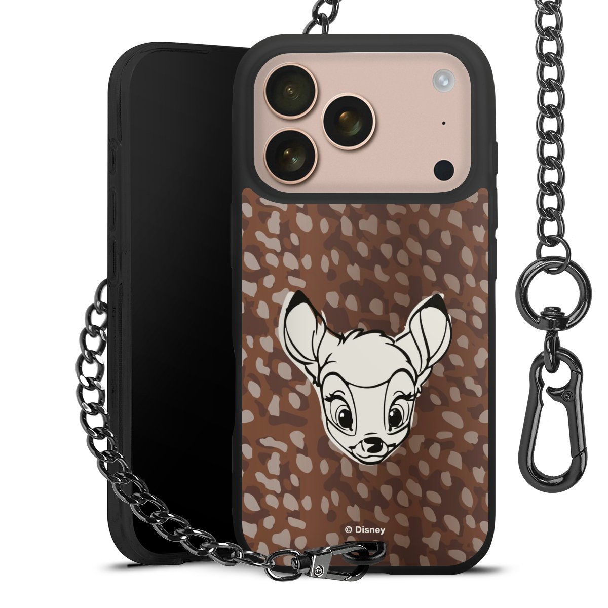 Die Handyhülle verfügt über eine mittig am unteren Rand platzierte Öse, an der die Metallkette stabil befestigt ist. Bestelle die Hülle einfach für Dein Smartphone-Modell, dann passt sie wie angegossen und Du brauchst sie bloß einmal anzudrücken. Handy in die Tasche, Karabiner an den Hosenbund – schon kann die Party starten.