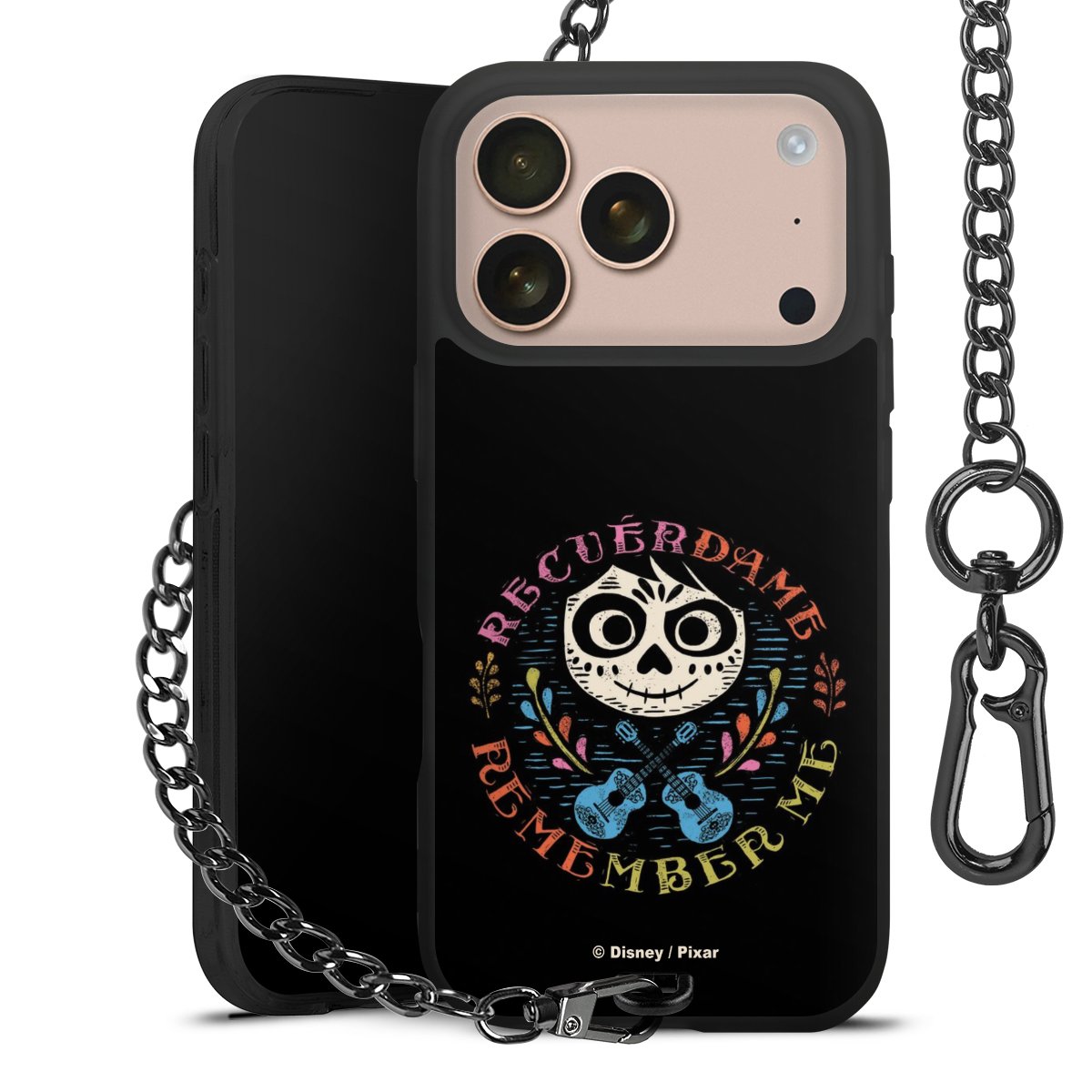- Mattschwarze Handyhülle mit Metallkette