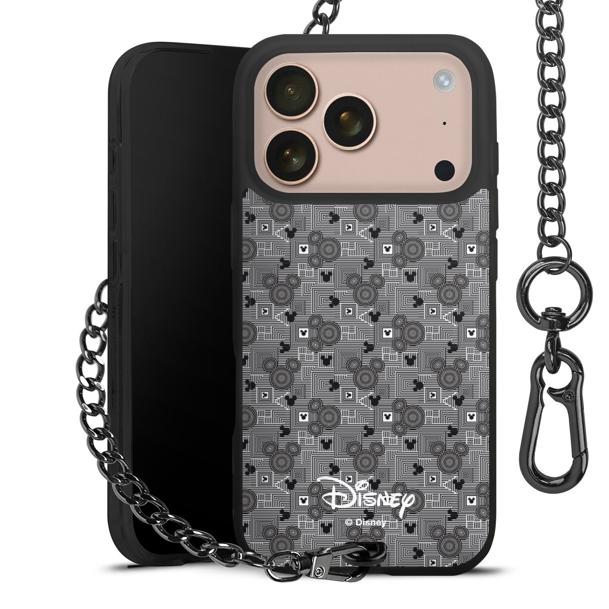 • Mattschwarze Handyhülle mit Metallkette