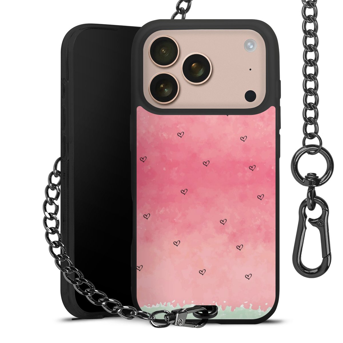 - Mattschwarze Handyhülle mit Metallkette