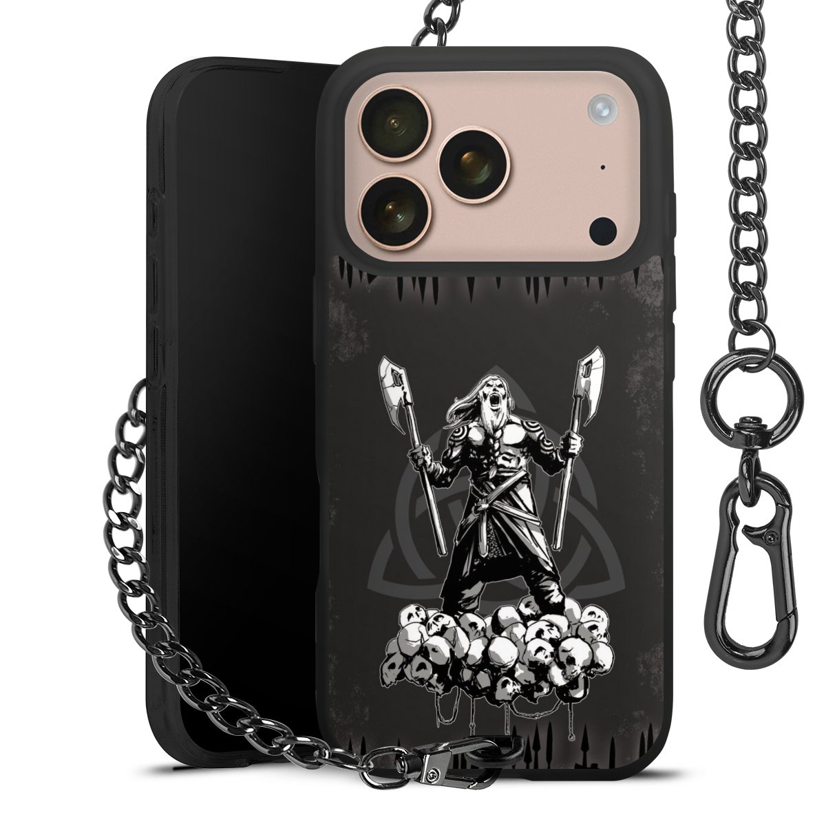• Mattschwarze Handyhülle mit Metallkette