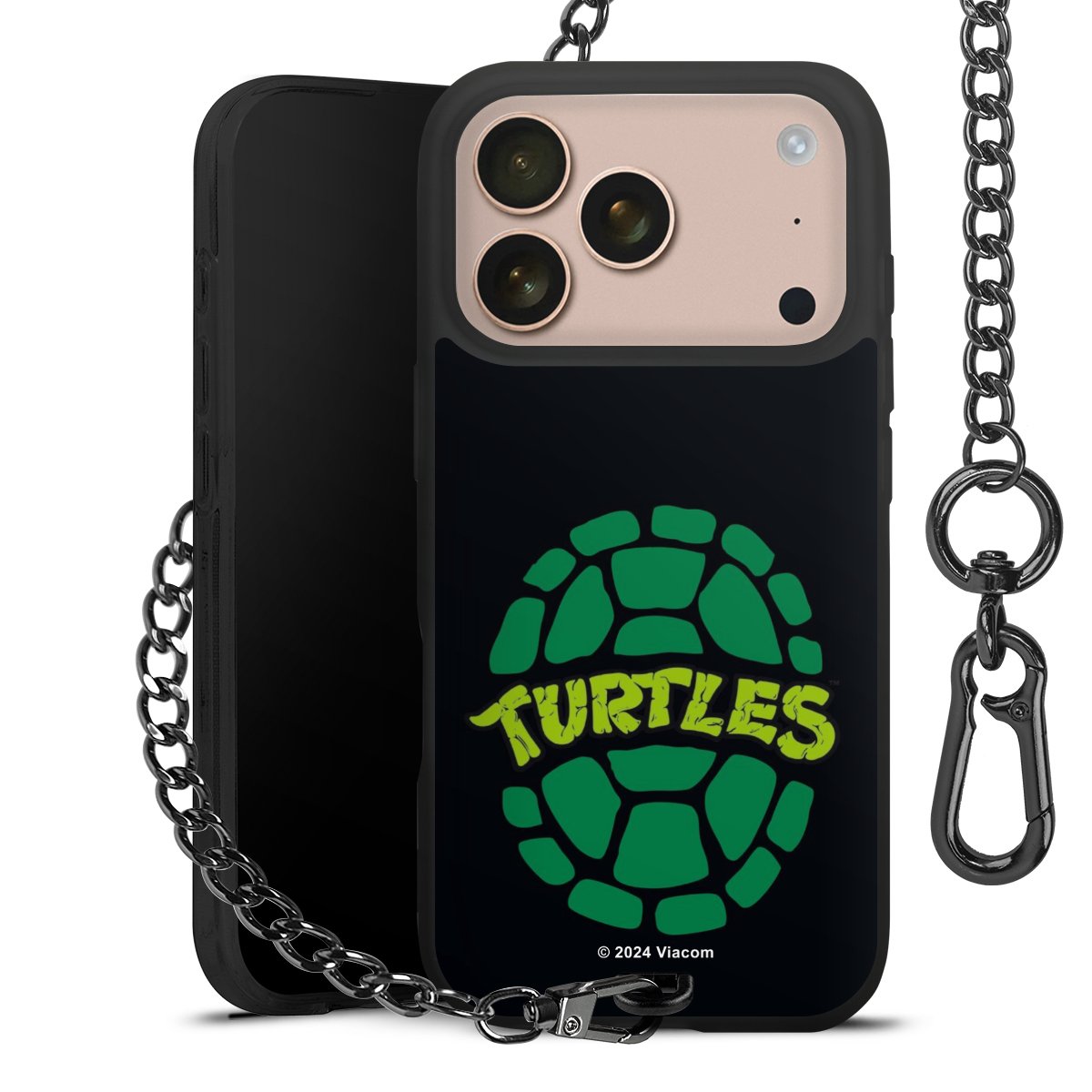 - Mattschwarze Handyhülle mit Metallkette