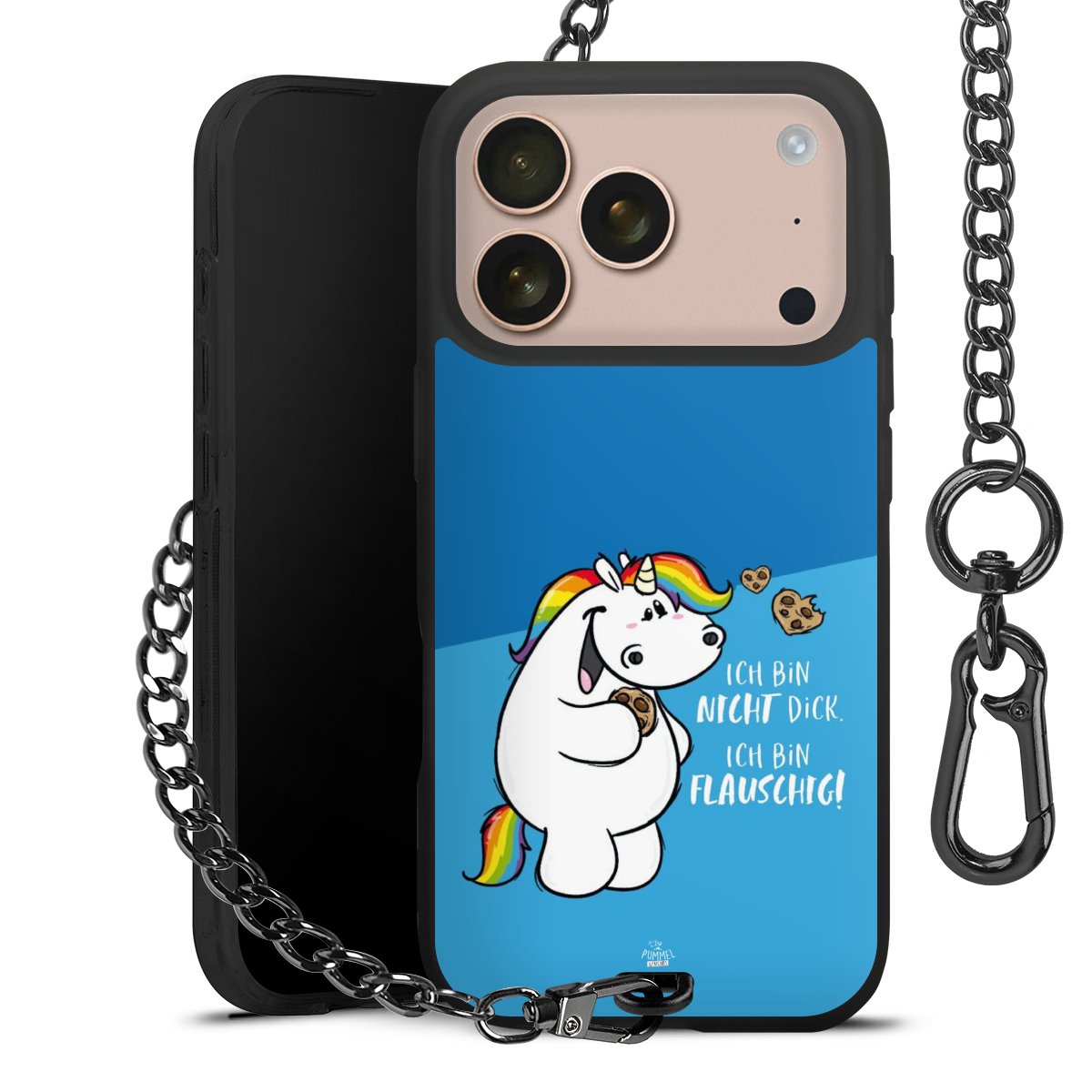 Die mattschwarze Silikon-Handyhülle besteht aus robustem TPU (thermoplastisches Polyurethan). Sie ist flexibel und schützt Dein Smartphone vor Stößen und Kratzern. Die Kette sowie der Karabinerhaken sind aus Metall in Gunmetal-Optik gefertigt. Für dieses Produkt kommen ausschließlich TÜV-geprüfte Materialien zum Einsatz.