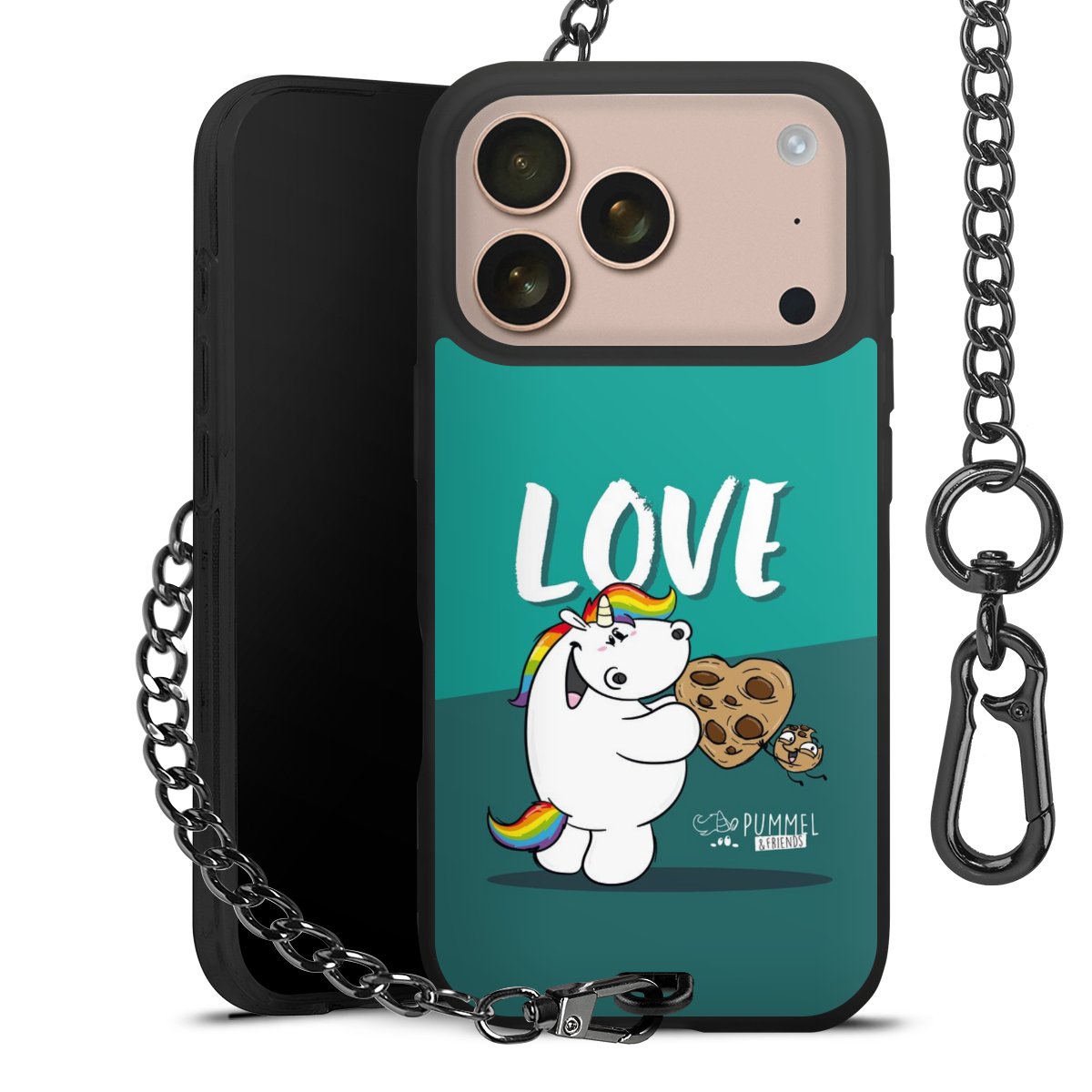 Die mattschwarze Silikon-Handyhülle besteht aus robustem TPU (thermoplastisches Polyurethan). Sie ist flexibel und schützt Dein Smartphone vor Stößen und Kratzern. Die Kette sowie der Karabinerhaken sind aus Metall in Gunmetal-Optik gefertigt. Für dieses Produkt kommen ausschließlich TÜV-geprüfte Materialien zum Einsatz.