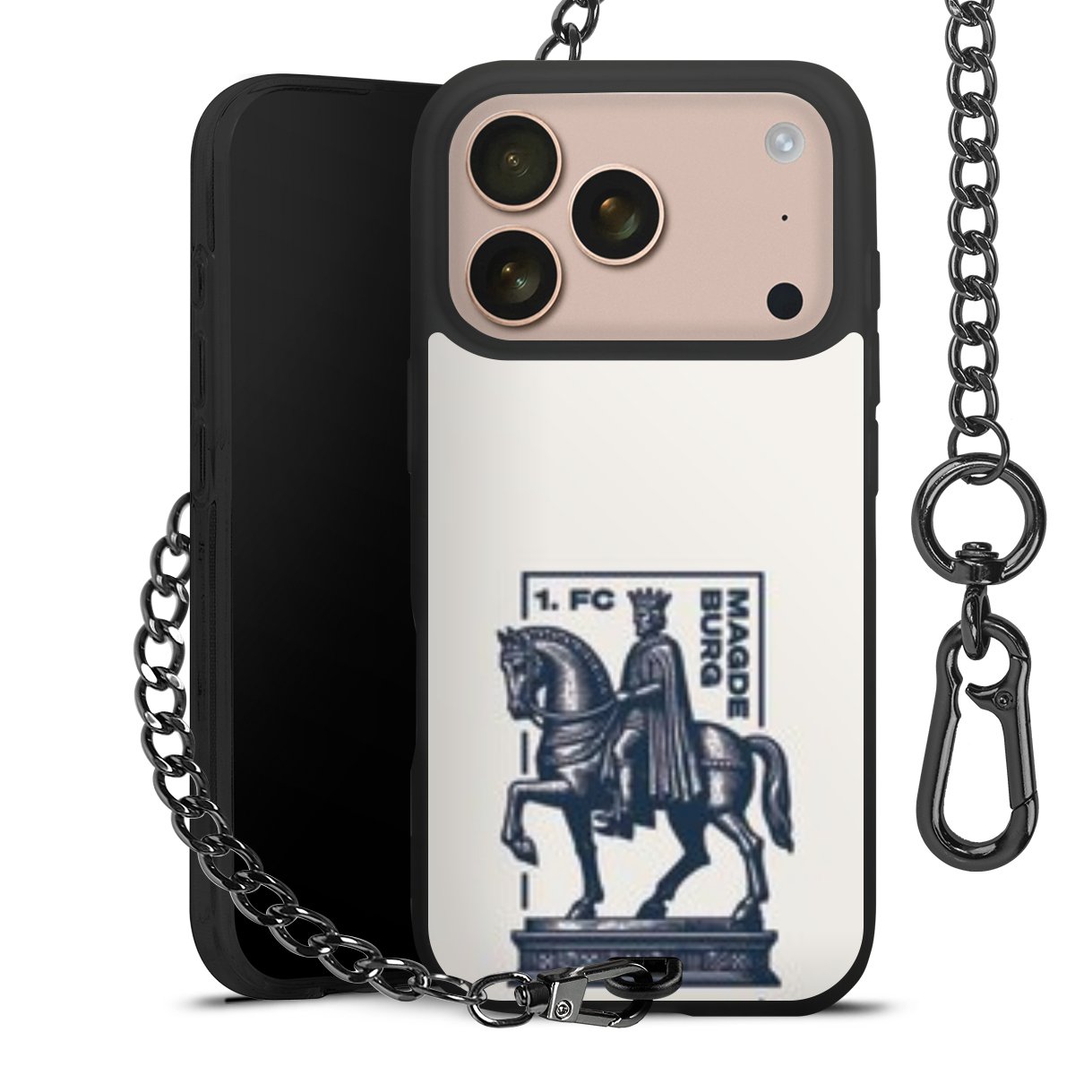 - Mattschwarze Handyhülle mit Metallkette