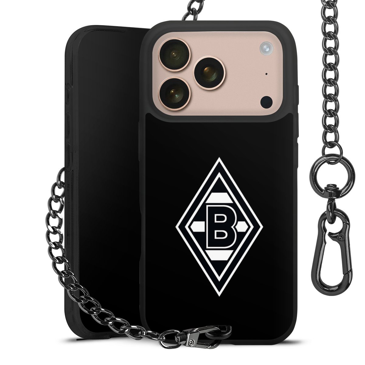 • Mattschwarze Handyhülle mit Metallkette