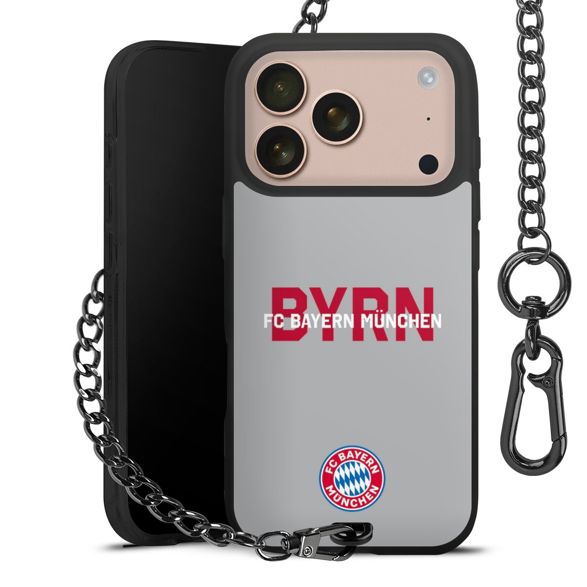 • Mattschwarze Handyhülle mit Metallkette