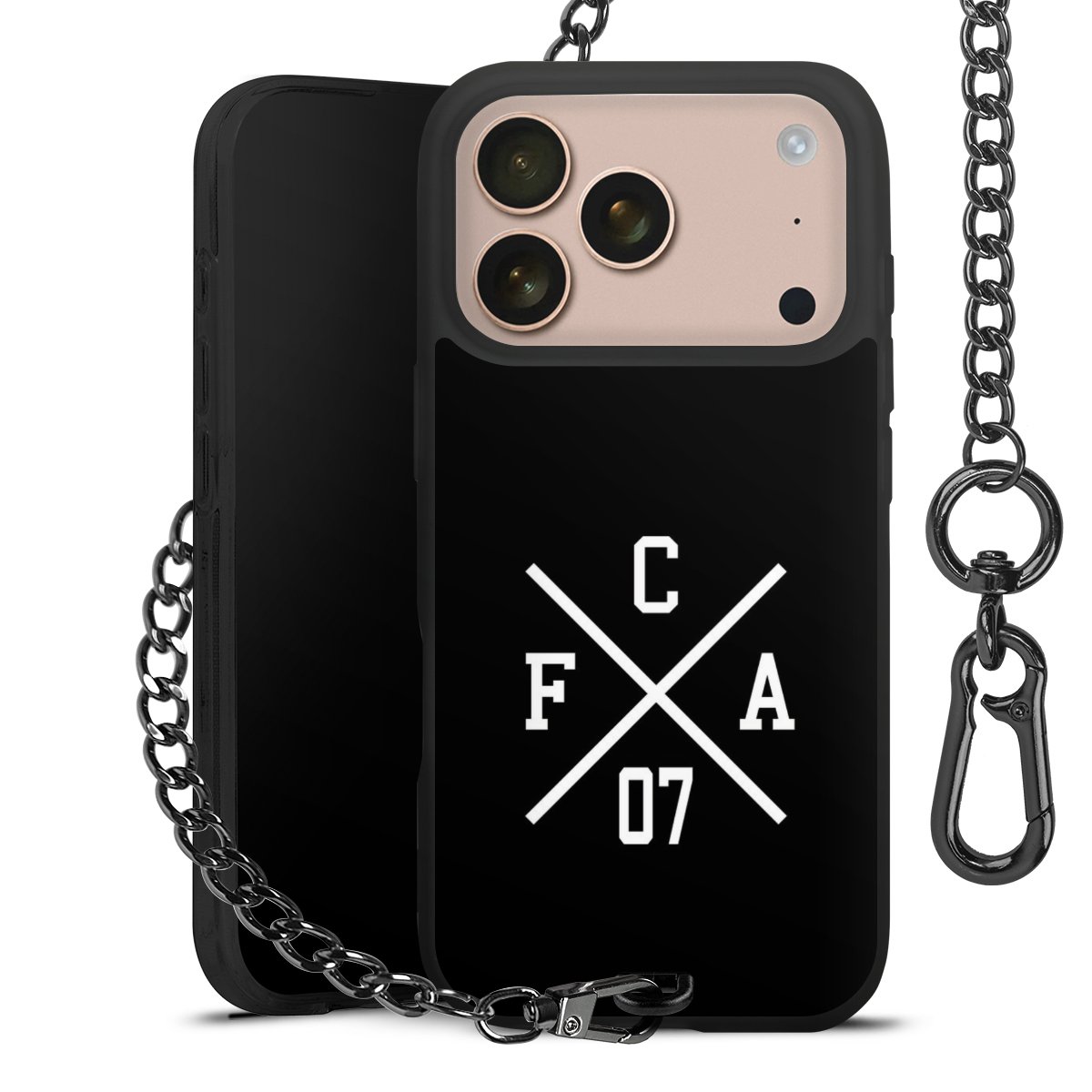 • Mattschwarze Handyhülle mit Metallkette