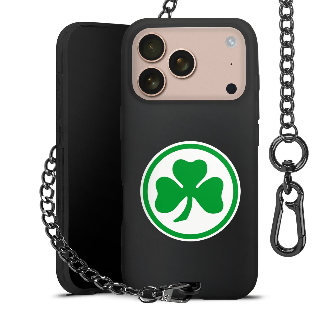 • Mattschwarze Handyhülle mit Metallkette