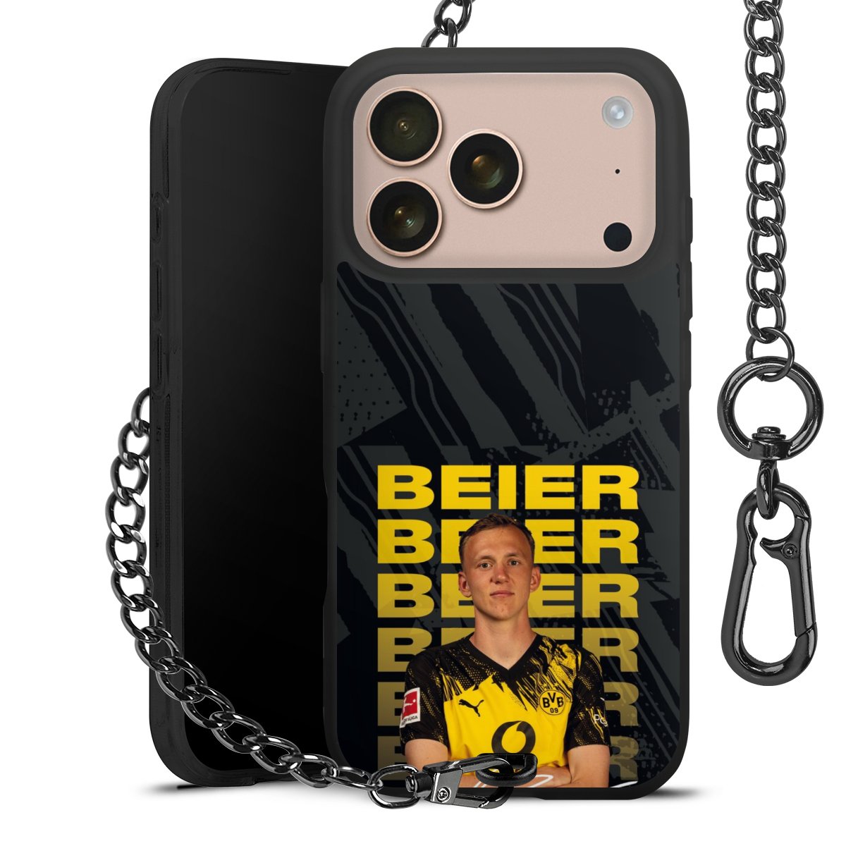 Ob im Alltag, beim Feiern mit Deinen Jungs oder auf Festivals – mit dem superpraktischen Belt Case steckst Du alle Sorgen um Diebstahl und Spider-App ganz entspannt in die Tasche. Es besteht aus einem coolen mattschwarzen Silikon Premium Case, dem Du ein individuelles Design verpassen kannst, und einer daran befestigten Kette in lässiger Gunmetal-Optik. Mit dem Karabiner auf der anderen Seite klickst Du die Kette mit einem Handgriff an Deine Gürtelschlaufe und schon ist Dein Smartphone sicher und stets griffbereit in der Hosentasche verstaut.