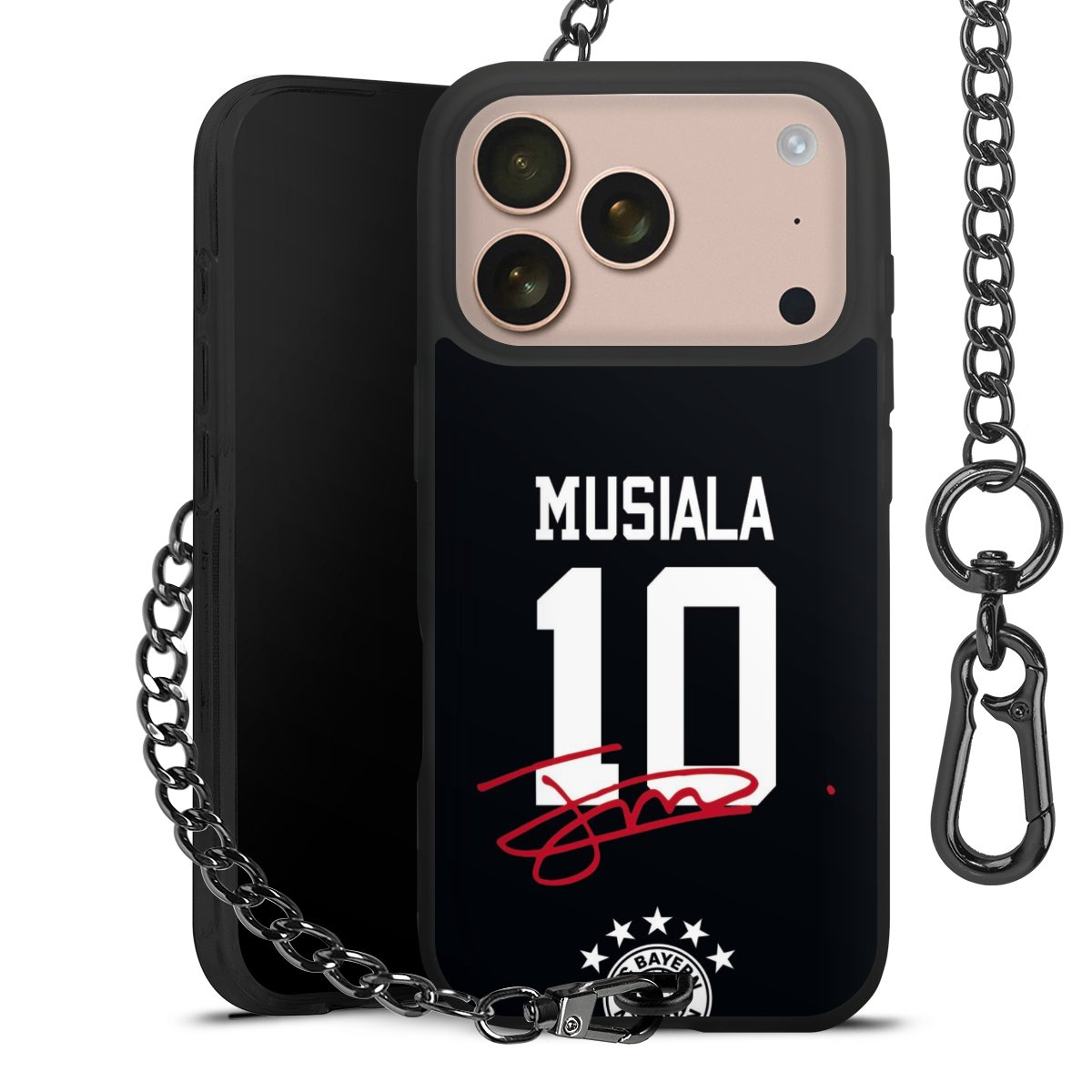 • Mattschwarze Handyhülle mit Metallkette