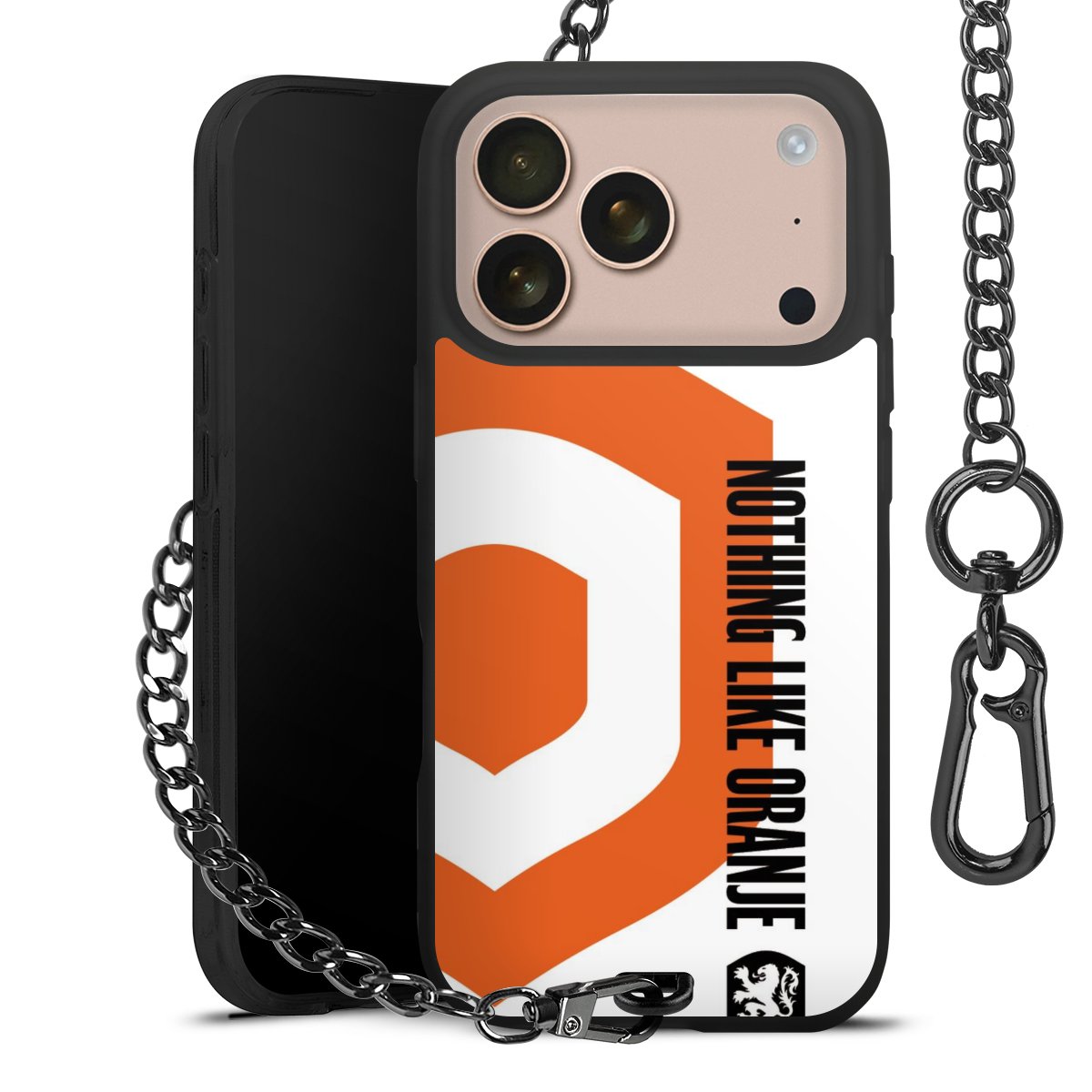 • Mattschwarze Handyhülle mit Metallkette