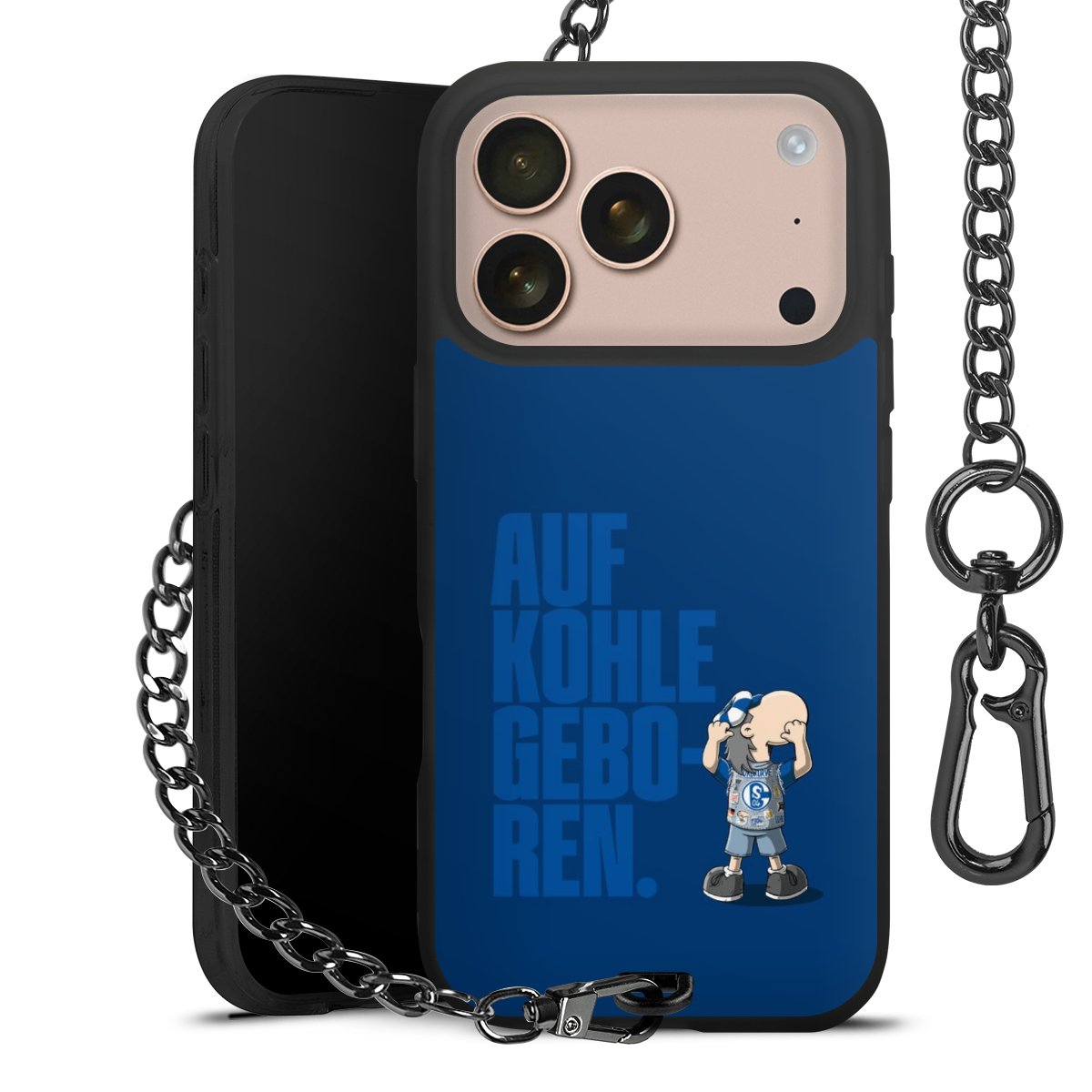 Die Handyhülle verfügt über eine mittig am unteren Rand platzierte Öse, an der die Metallkette stabil befestigt ist. Bestelle die Hülle einfach für Dein Smartphone-Modell, dann passt sie wie angegossen und Du brauchst sie bloß einmal anzudrücken. Handy in die Tasche, Karabiner an den Hosenbund – schon kann die Party starten.
