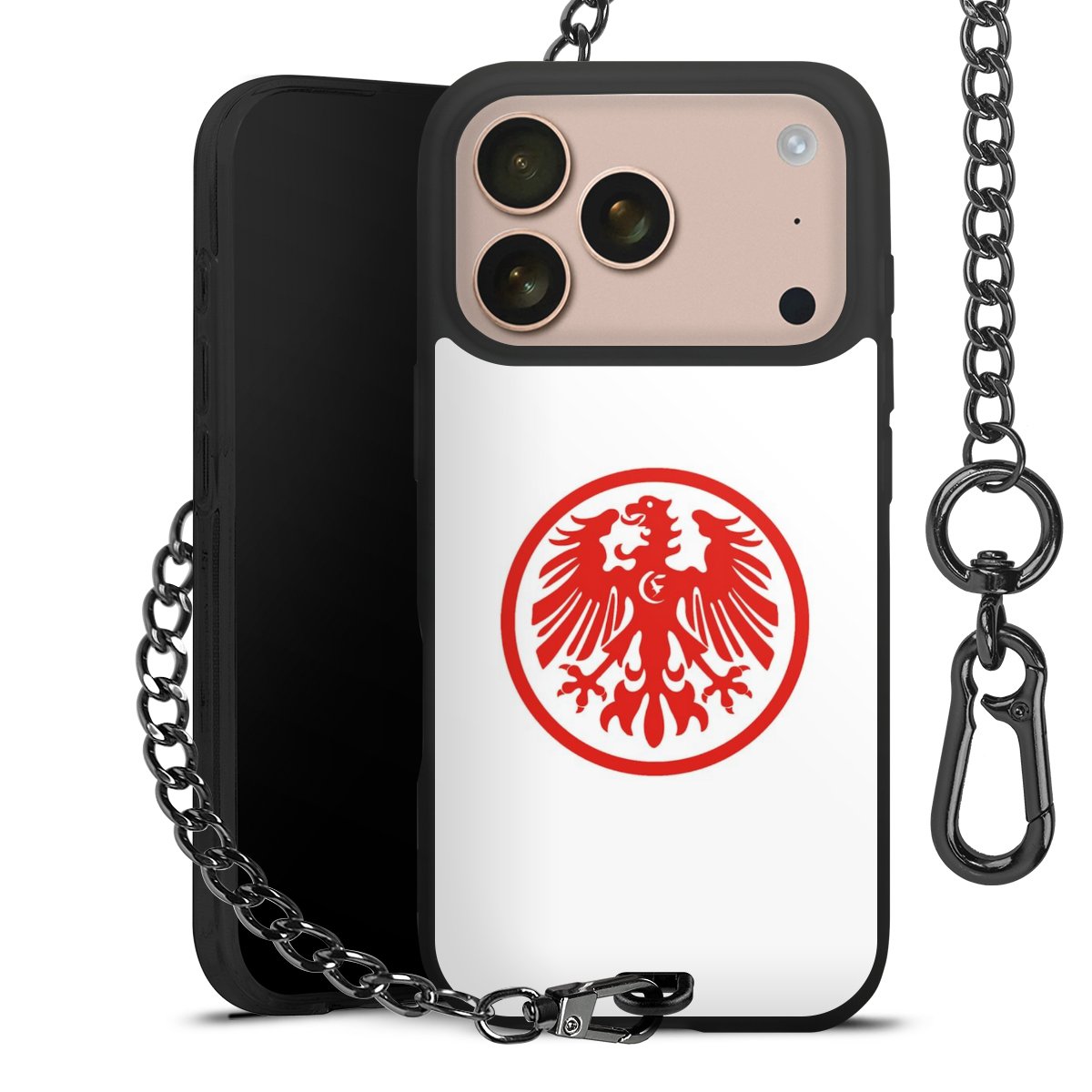 • Mattschwarze Handyhülle mit Metallkette