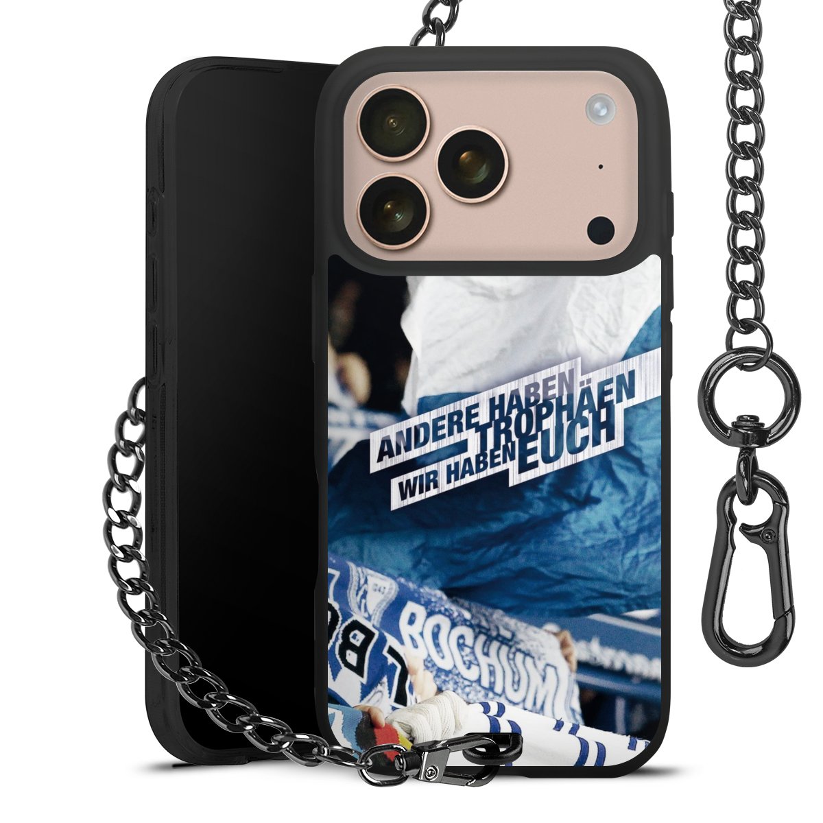 • Mattschwarze Handyhülle mit Metallkette