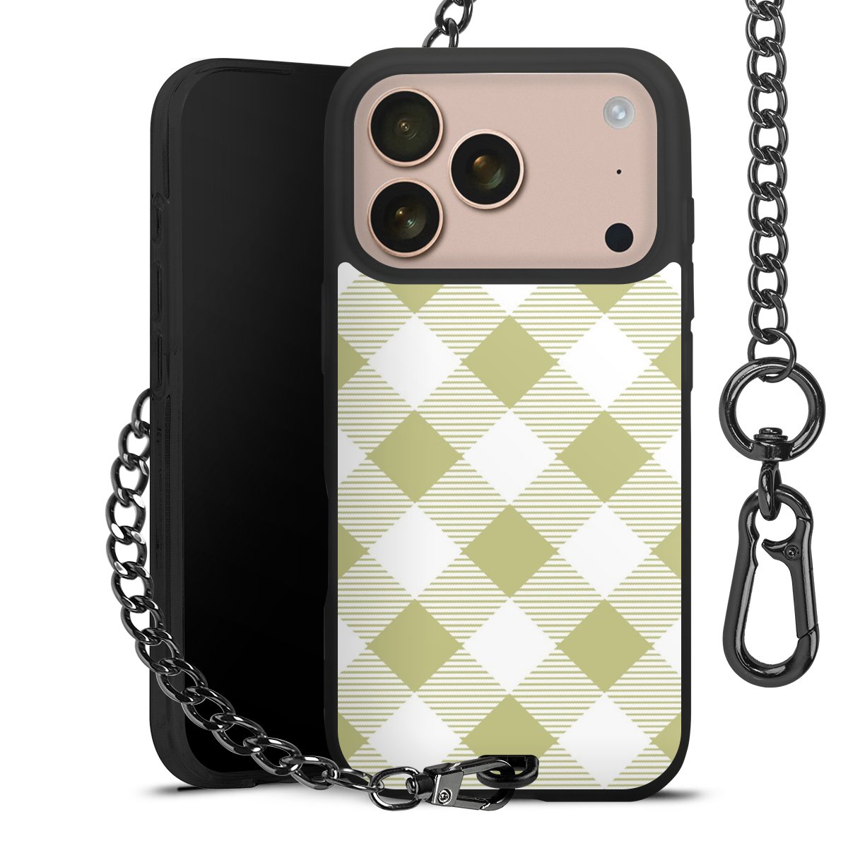 • Mattschwarze Handyhülle mit Metallkette