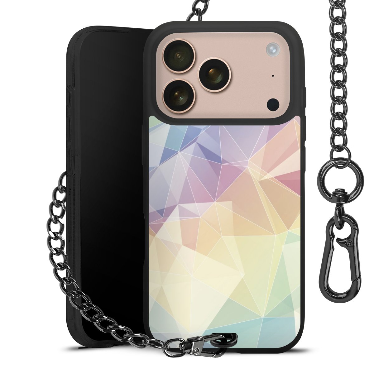 - Mattschwarze Handyhülle mit Metallkette