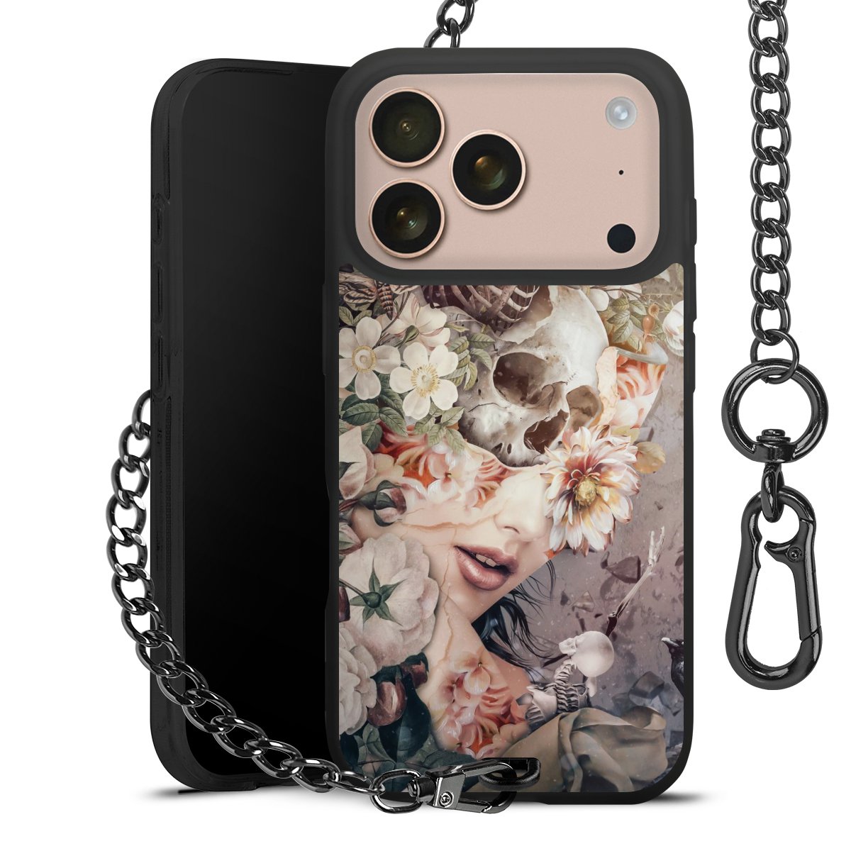 • Mattschwarze Handyhülle mit Metallkette