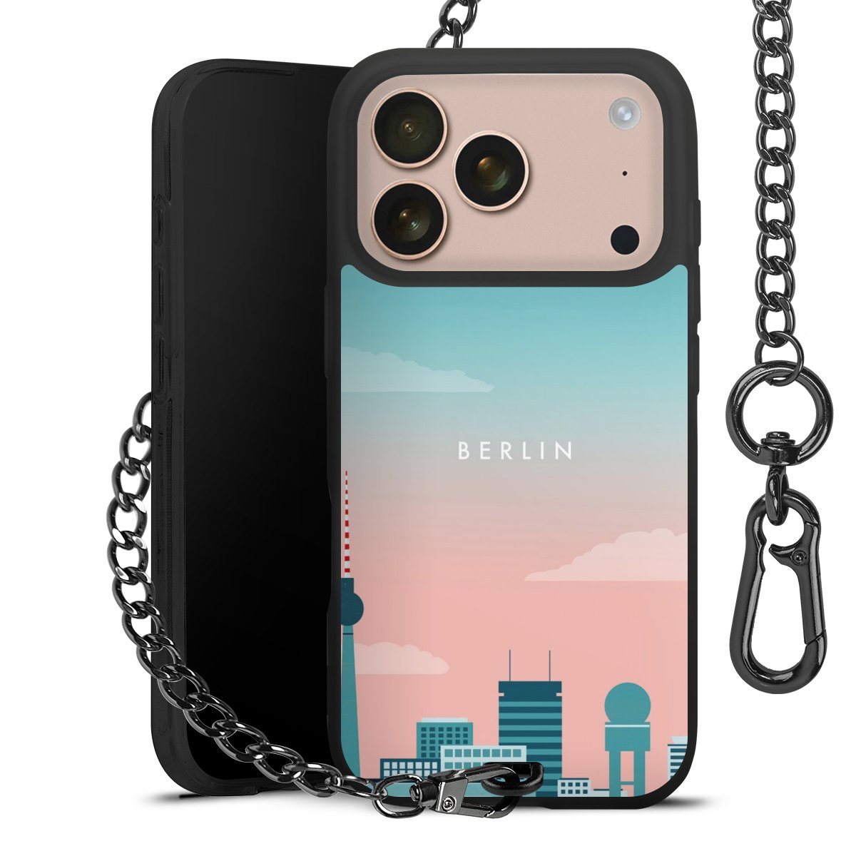 Die mattschwarze Silikon-Handyhülle besteht aus robustem TPU (thermoplastisches Polyurethan). Sie ist flexibel und schützt Dein Smartphone vor Stößen und Kratzern. Die Kette sowie der Karabinerhaken sind aus Metall in Gunmetal-Optik gefertigt. Für dieses Produkt kommen ausschließlich TÜV-geprüfte Materialien zum Einsatz.