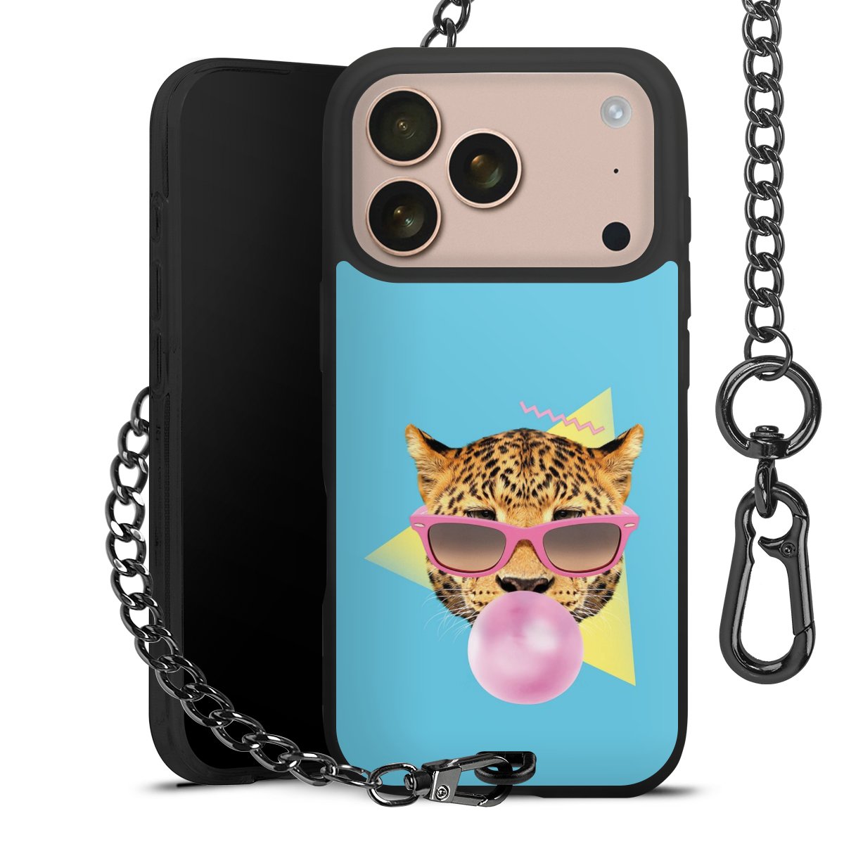 Die Handyhülle verfügt über eine mittig am unteren Rand platzierte Öse, an der die Metallkette stabil befestigt ist. Bestelle die Hülle einfach für Dein Smartphone-Modell, dann passt sie wie angegossen und Du brauchst sie bloß einmal anzudrücken. Handy in die Tasche, Karabiner an den Hosenbund – schon kann die Party starten.