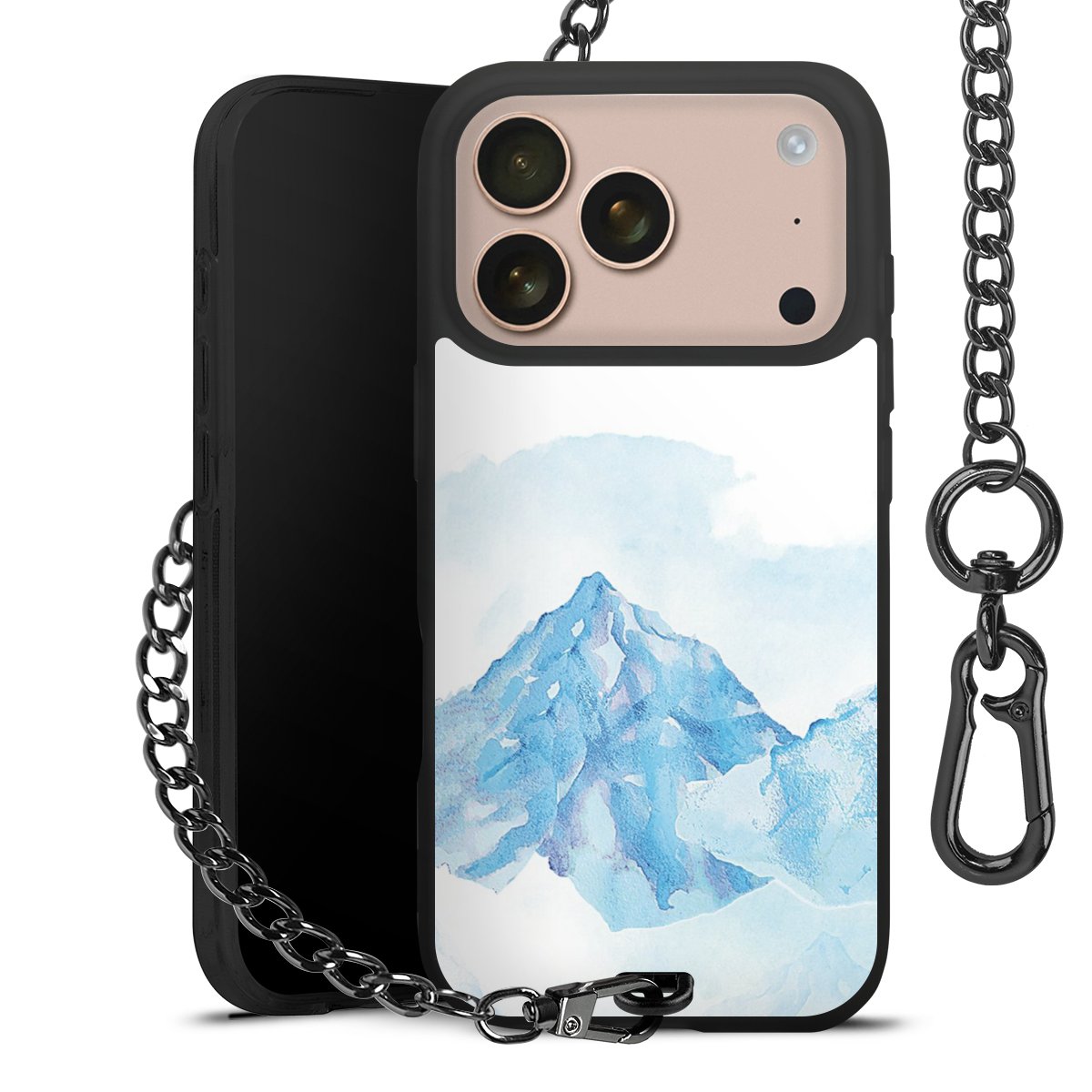 - Mattschwarze Handyhülle mit Metallkette